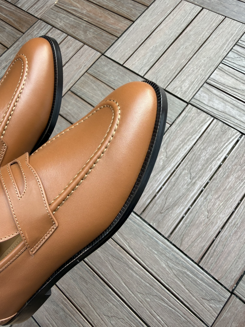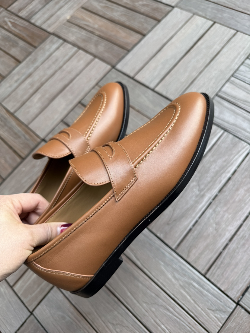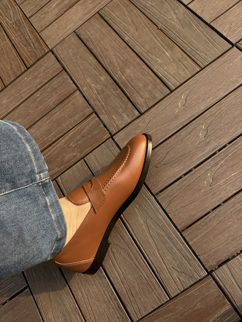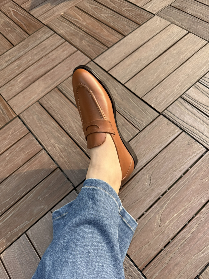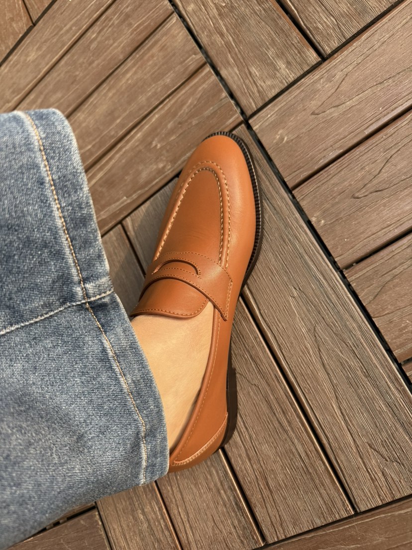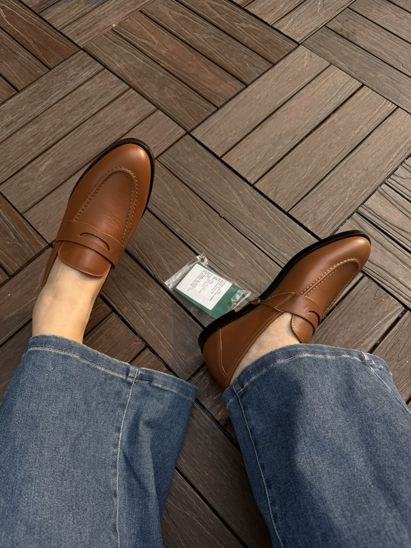 LP高端乐福鞋,看着生硬立体,是秀气的贵妇乐福鞋没错。摸上去比较硬朗,但就是这么个恰到好处柔软度,有立体感硬朗线条的柔软度,凭借卓越楦型,让你上脚,就像滑进去一样,无与伦比楦型,穿上就是手工定制的皮鞋一样,看着秀气,穿进去宽松,脚丫子一滑就穿进去了,穿进去之后,虽然尖头,也不挤前掌,也不压脚背,舒适无比,你看我的逆天肥脚,穿进去秀气多了。建议选大半码,或者肥宽脚丫卡码选大。我36.5肥脚穿37,感觉量脚定制。内外底,全皮。