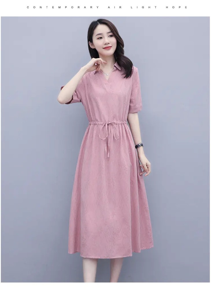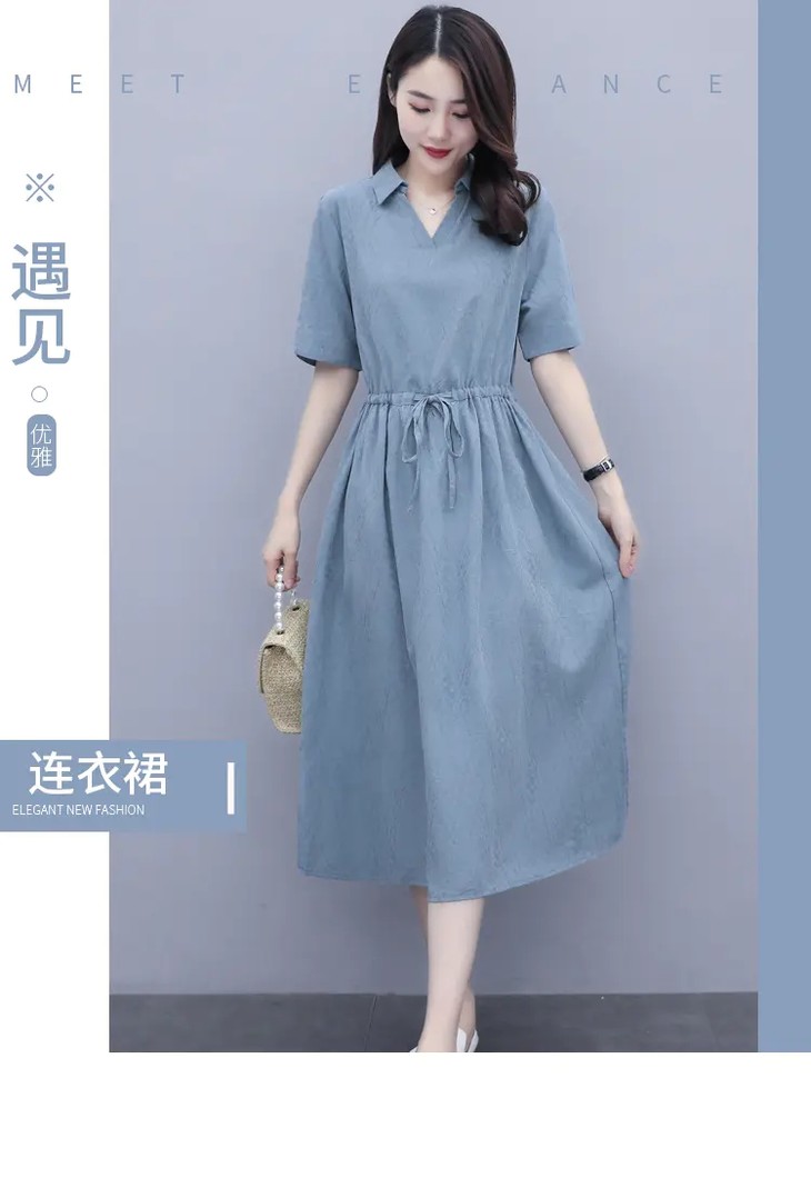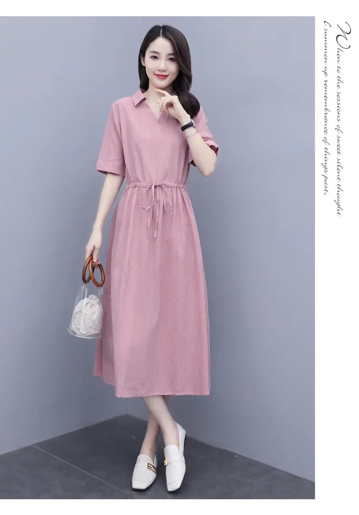 休闲文艺,韩版收腰显瘦中长款棉麻连衣裙HR-SWCS987-1