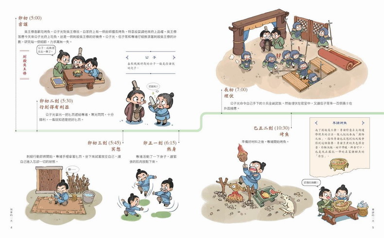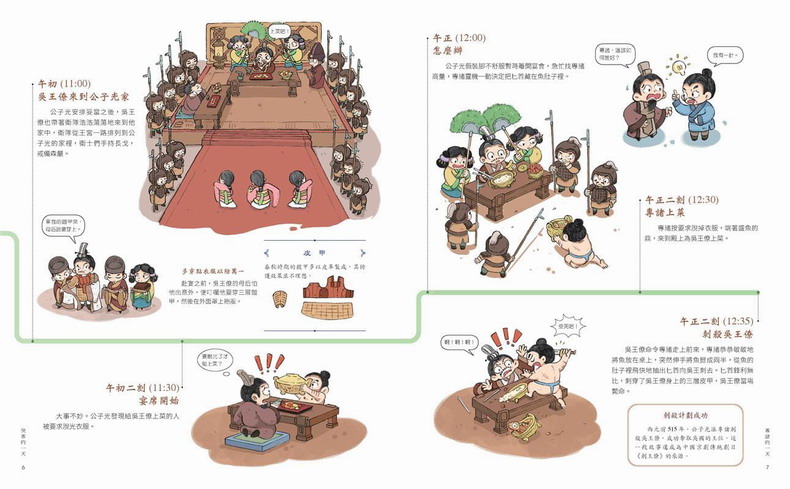內容參考《史記》、《元史》、《東周列國傳》等史書及學者研究論著,將專業知識融入於趣味畫作中,篇幅短而易讀,富含知識性。