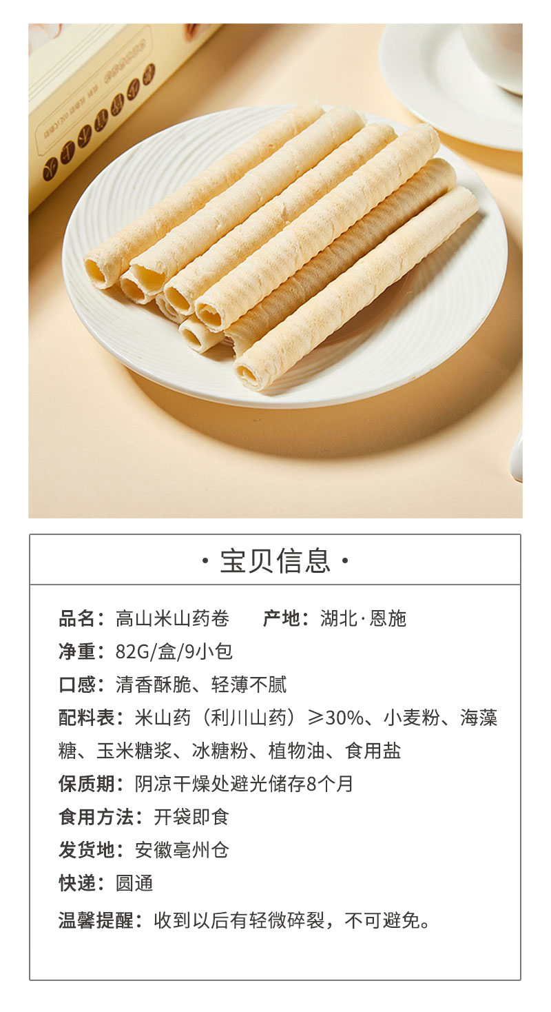 【高山米山药卷】原料选自富硒生物圈种植,1根米山药=100根普通山药,低温干燥制作,不容易上火,又脆又香,护胃小能手!