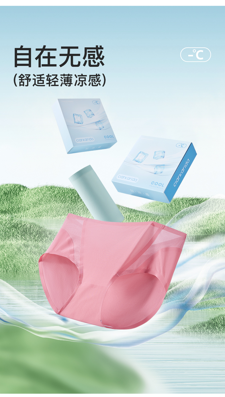 【3条装】拍大一码!Clarkarida卡恩 女士轻薄裸感冰丝网纱内裤 舒适裸感,无痕贴合,紧致包裹,提臀塑型,裆部蚕蛹蛋白5Ayi菌;透气不闷,吸湿速干;独立包装