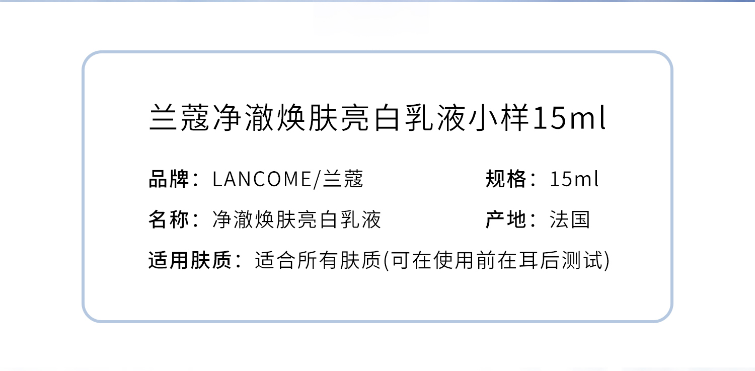 【小样】兰蔻净澈焕肤亮白乳液15ml/102252 美白提亮肤色实力保湿