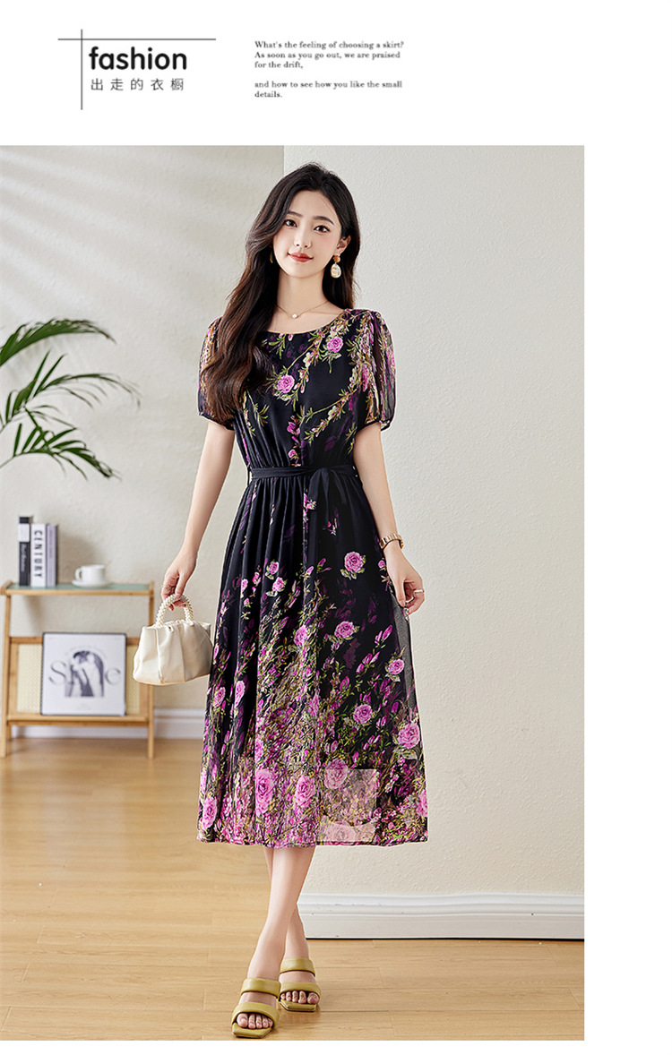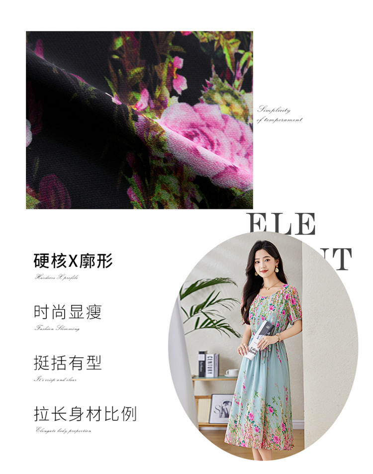 轻薄凉爽飘逸,花色连衣裙HR-XXL6886