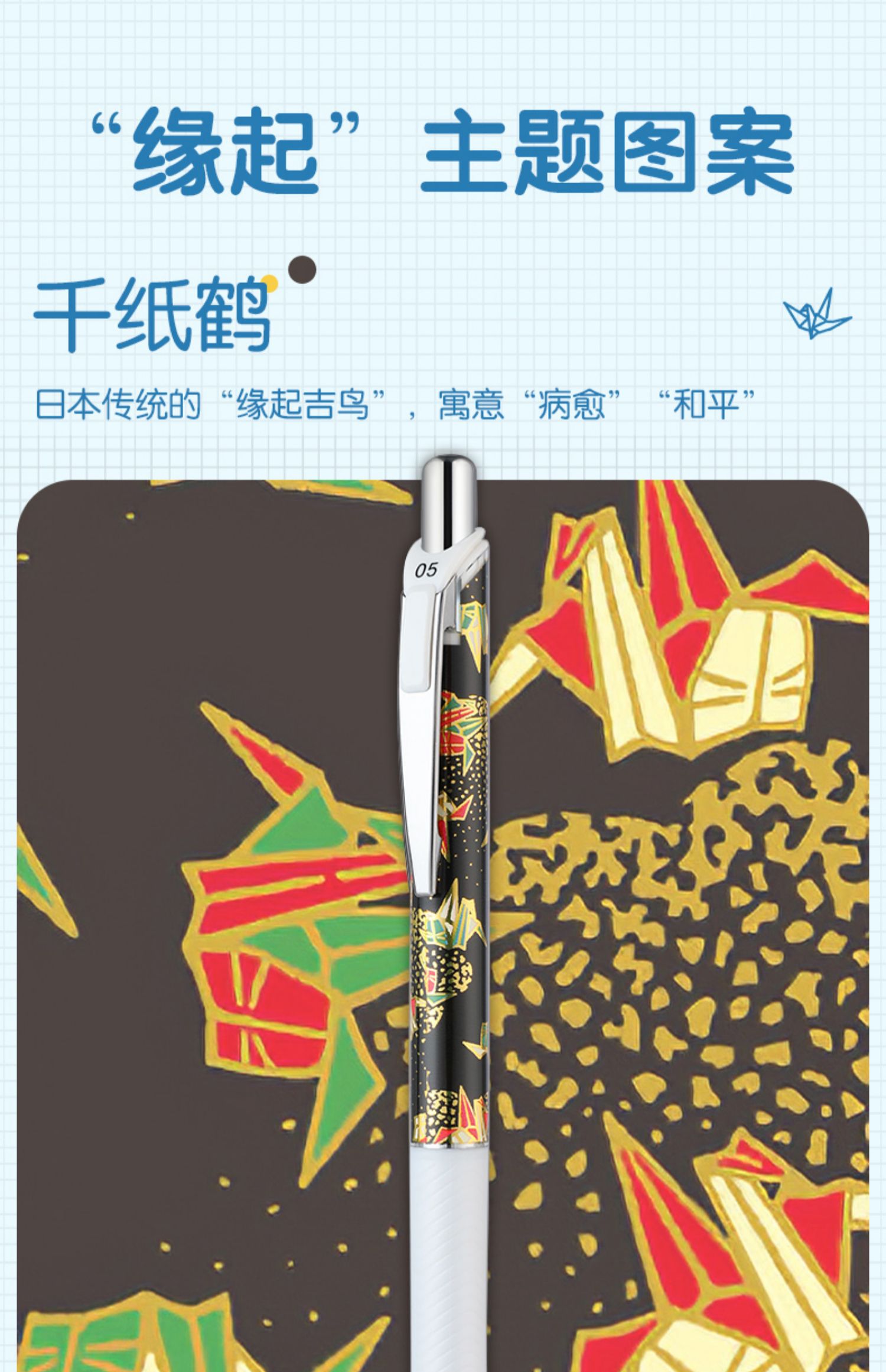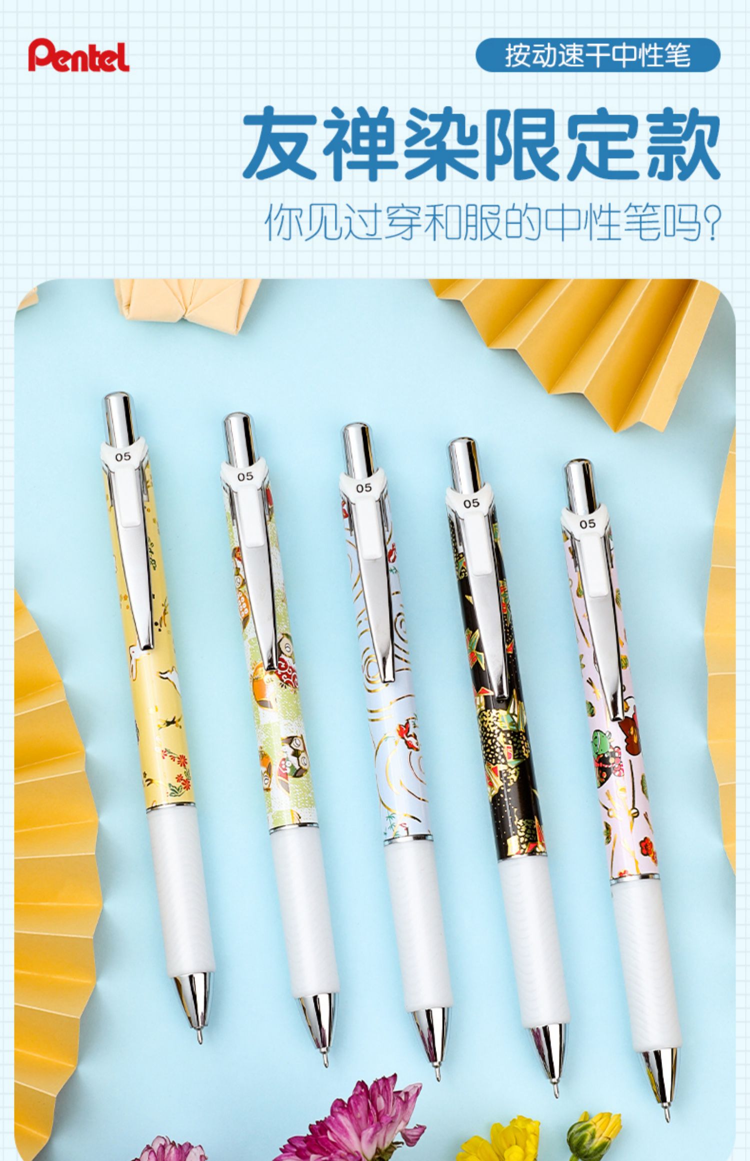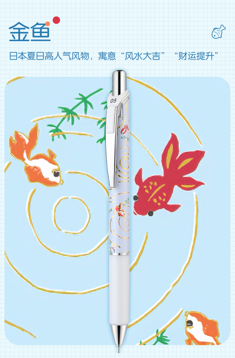 pentel派通BLN75友禅限定按动中性笔速干0.5mm学生考试黑色笔和风日系文艺范金鱼花兔猫头鹰图腾