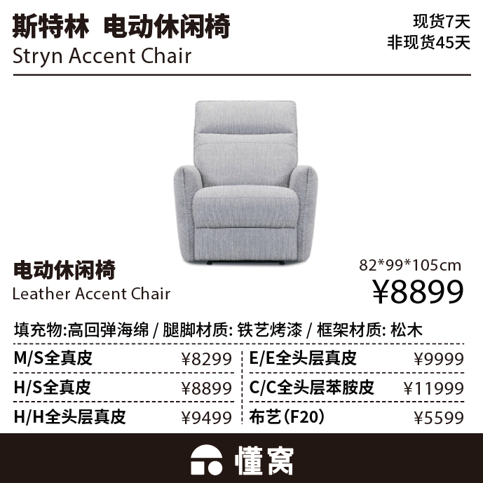 懂窝 | 斯特林 电动单人休闲椅 Stryn Accent Chair