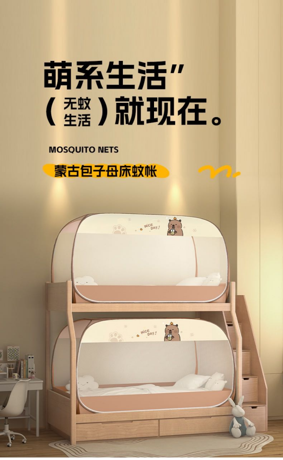 【 3秒速装 打开即用】卡通款蒙古包子母床蚊帐