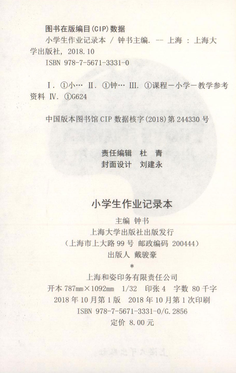正版小学生作业本记录册 小学一二三四五六年级/1.2.3.4.5.6年级语数英学习记录手册 上海大学出版社