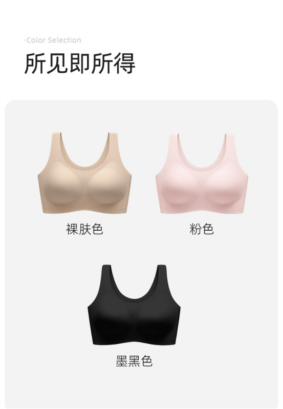 无钢圈设计,就像没穿一样自在,一整天都超舒服🥰。 而且它是无尺码的,不管什么身材都能完美适配,真的太贴心啦! 颜色也好看,款式简约又时尚,日常穿或者搭配衣服都超合适。 都给我冲这款内衣,保证你爱上它💕!