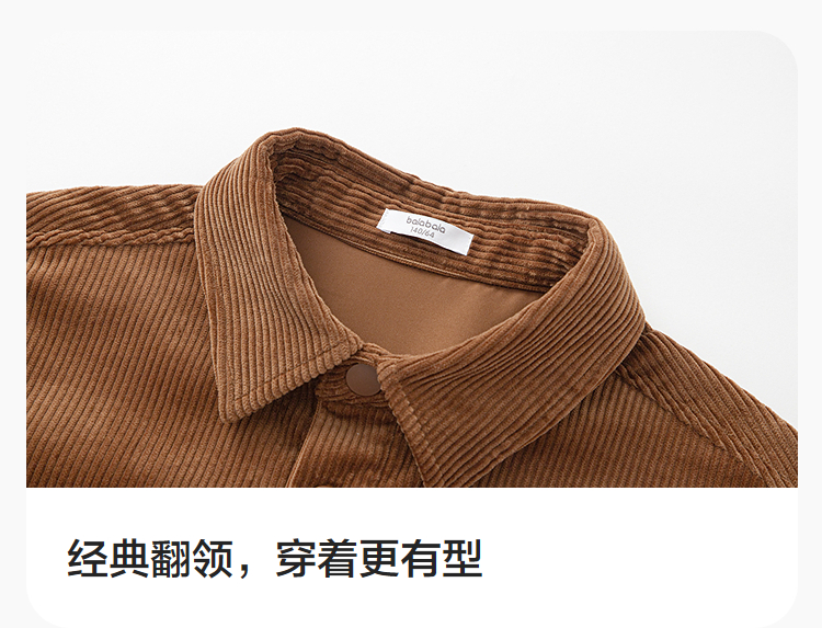 巴拉巴拉balaOne男童衬衫儿童长袖2025新款秋灯芯绒宽松纯棉上衣