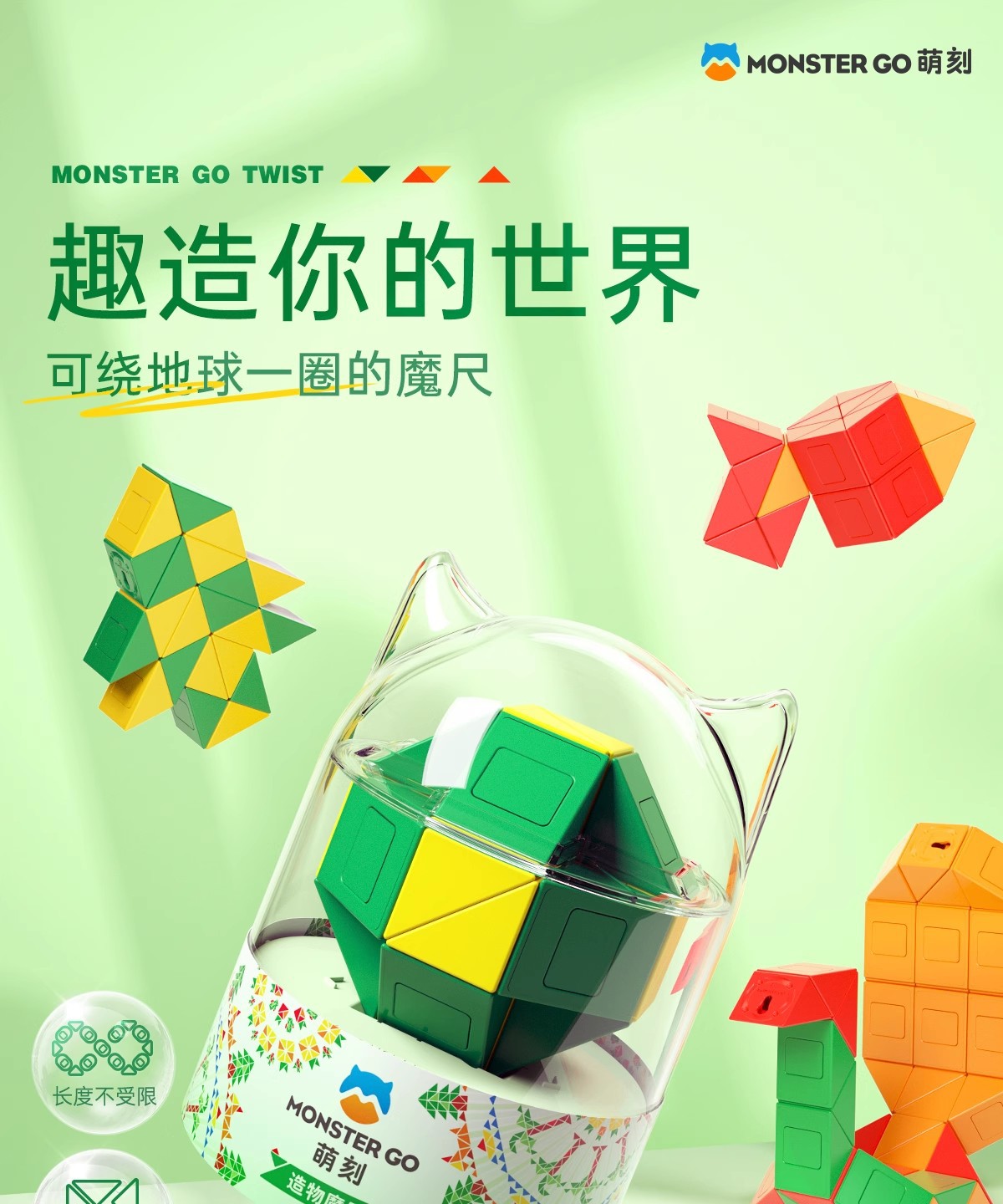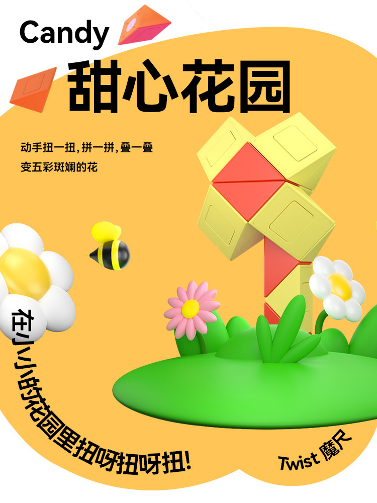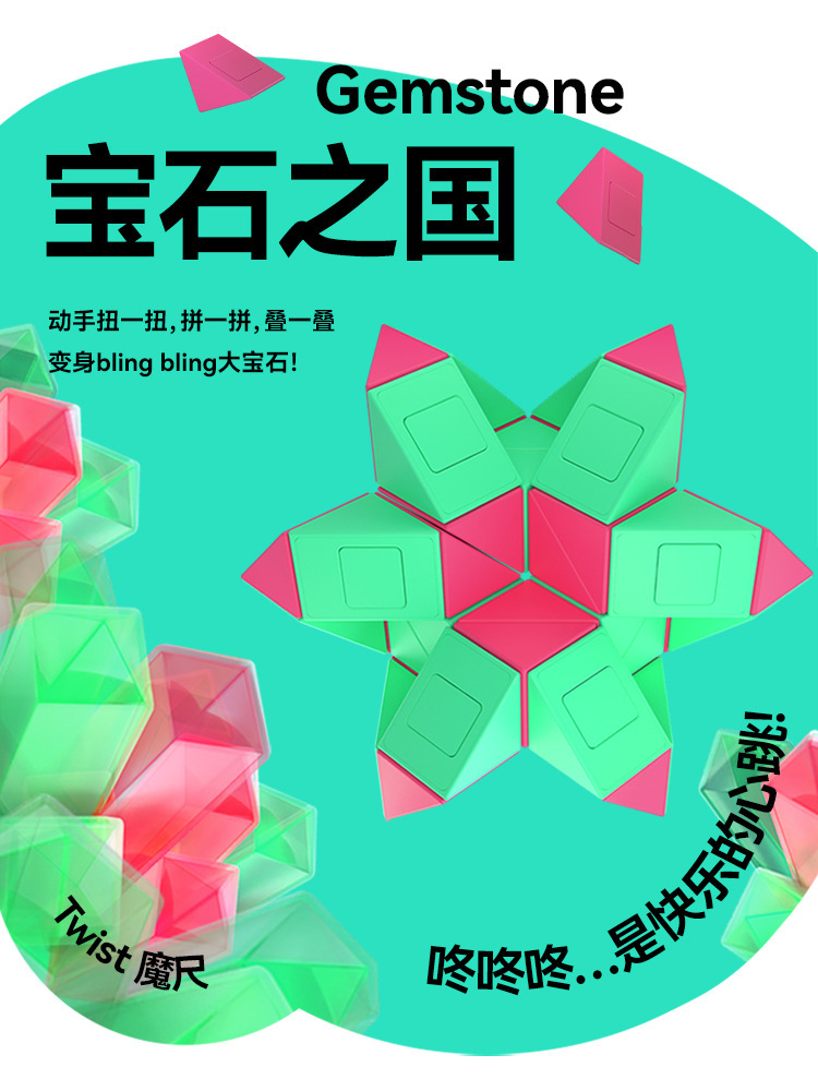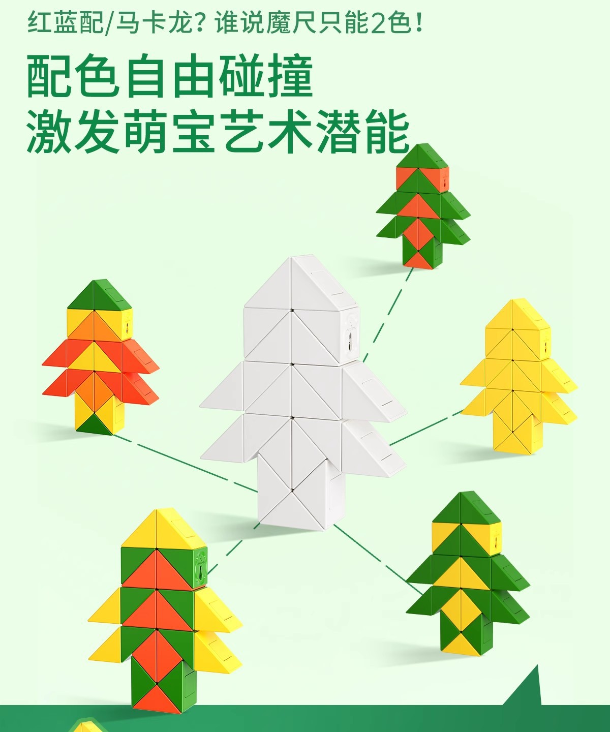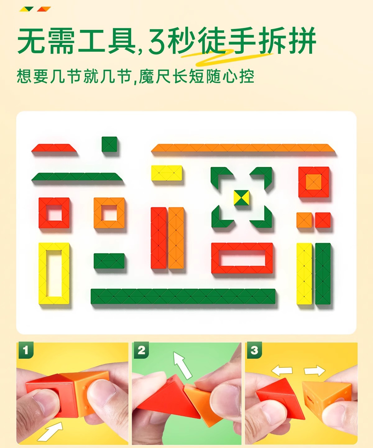 萌刻百变魔尺24段可拆卸3到6岁益智开发智力动脑思维训练早教积木