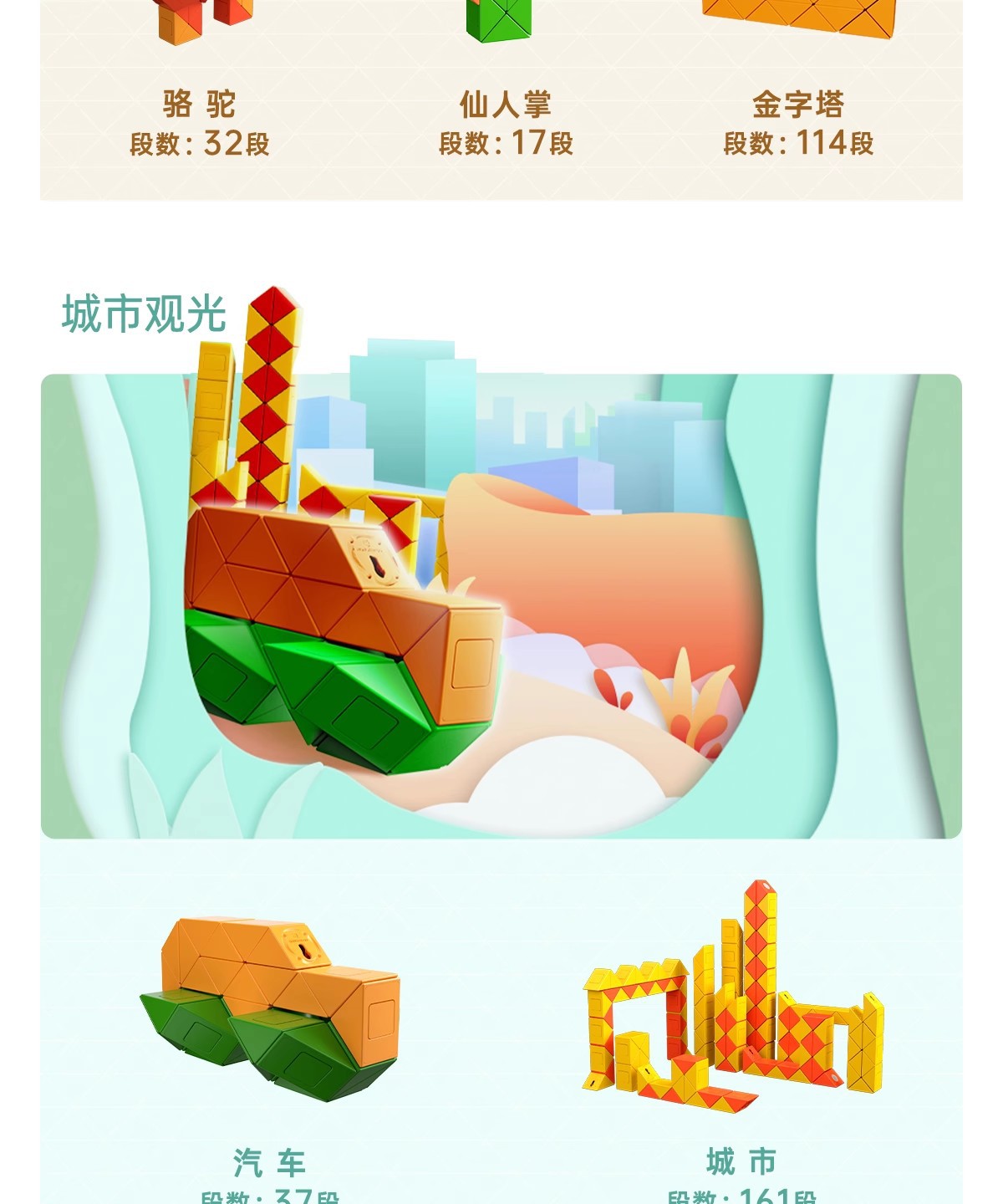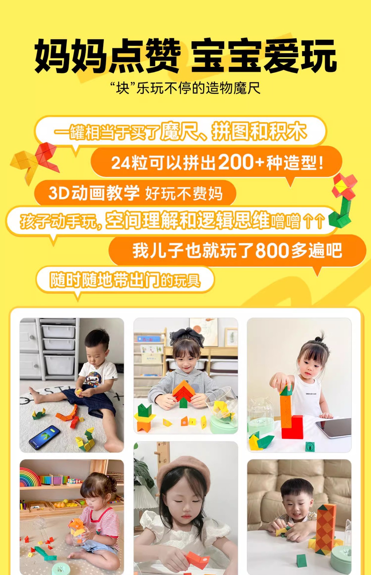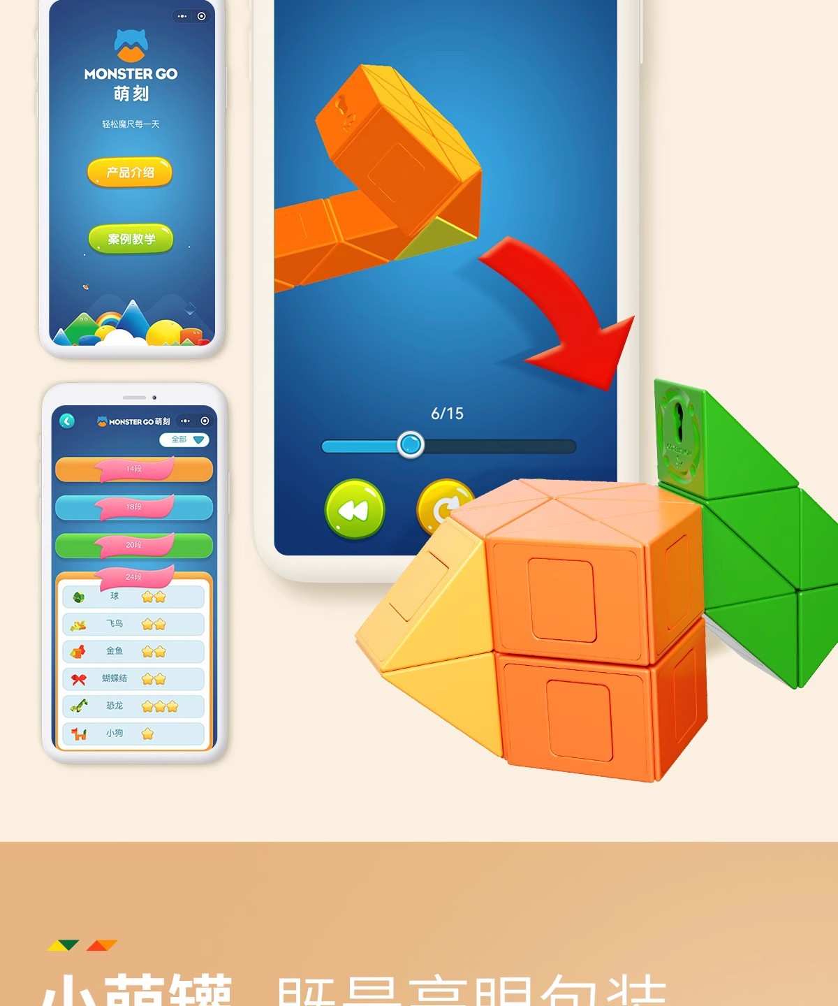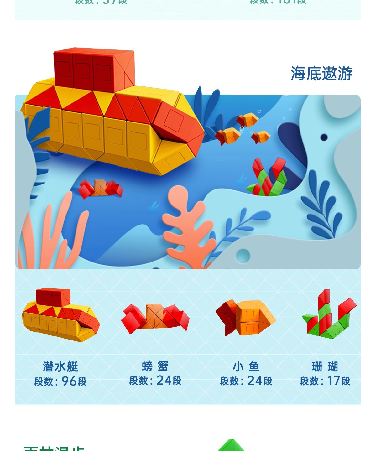 萌刻百变魔尺24段可拆卸3到6岁益智开发智力动脑思维训练早教积木