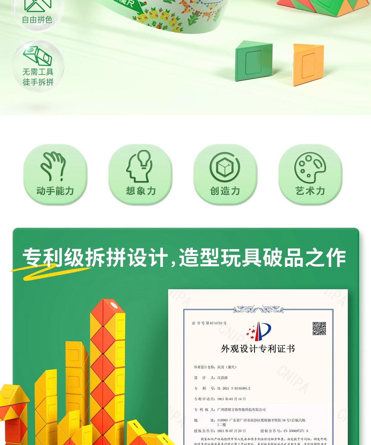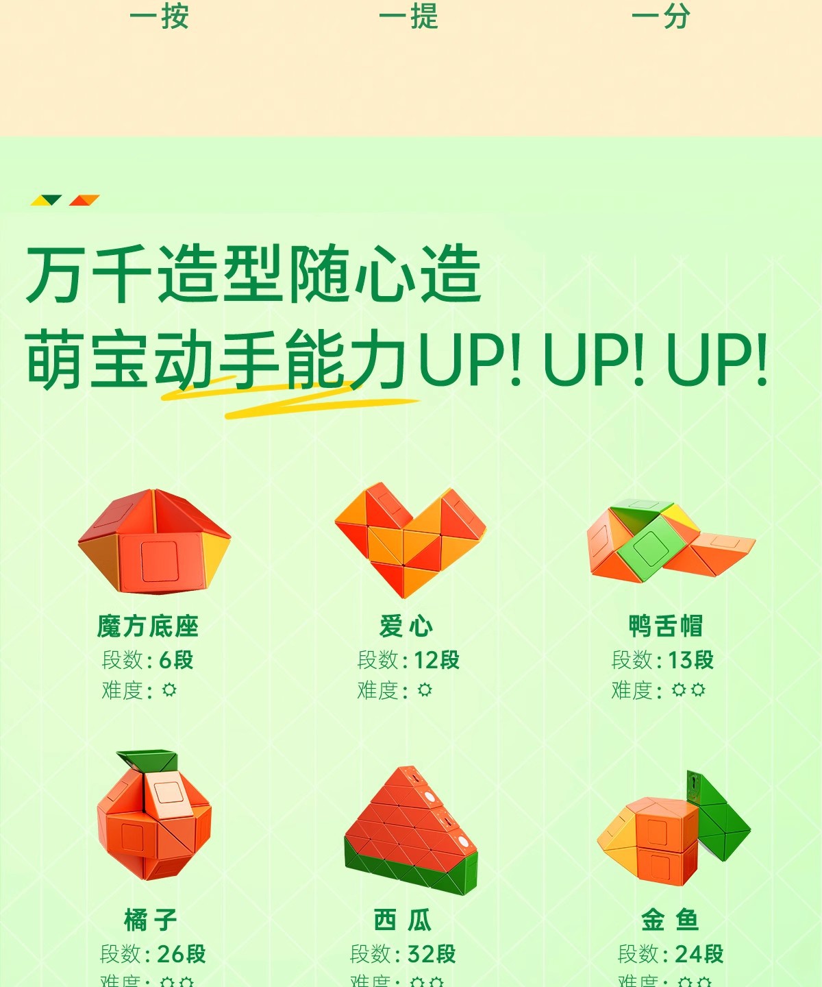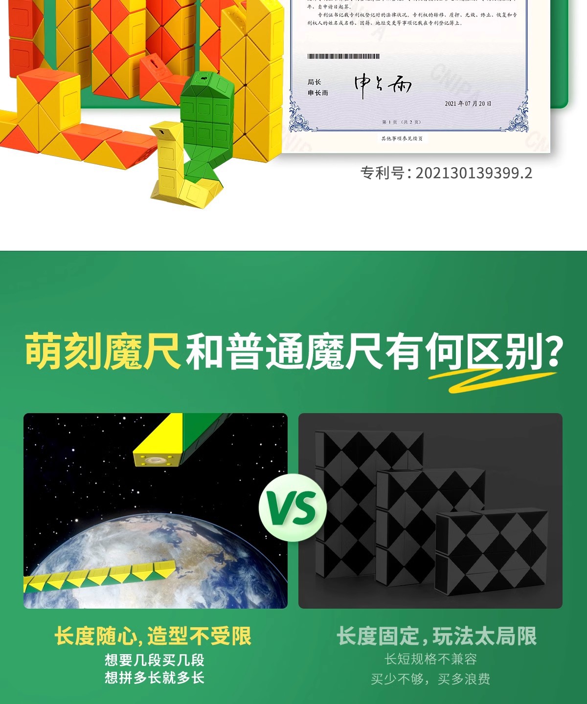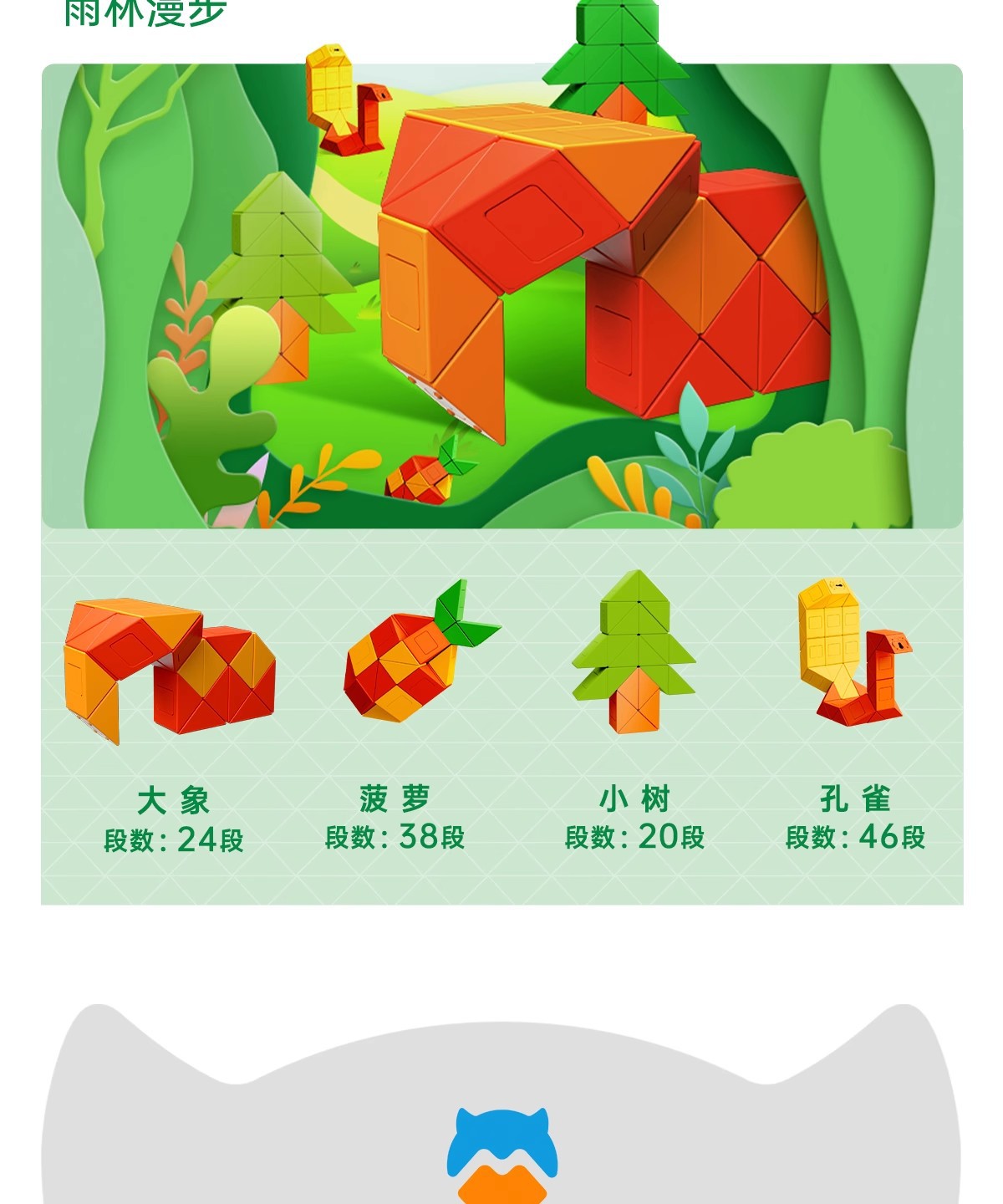 萌刻百变魔尺24段可拆卸3到6岁益智开发智力动脑思维训练早教积木