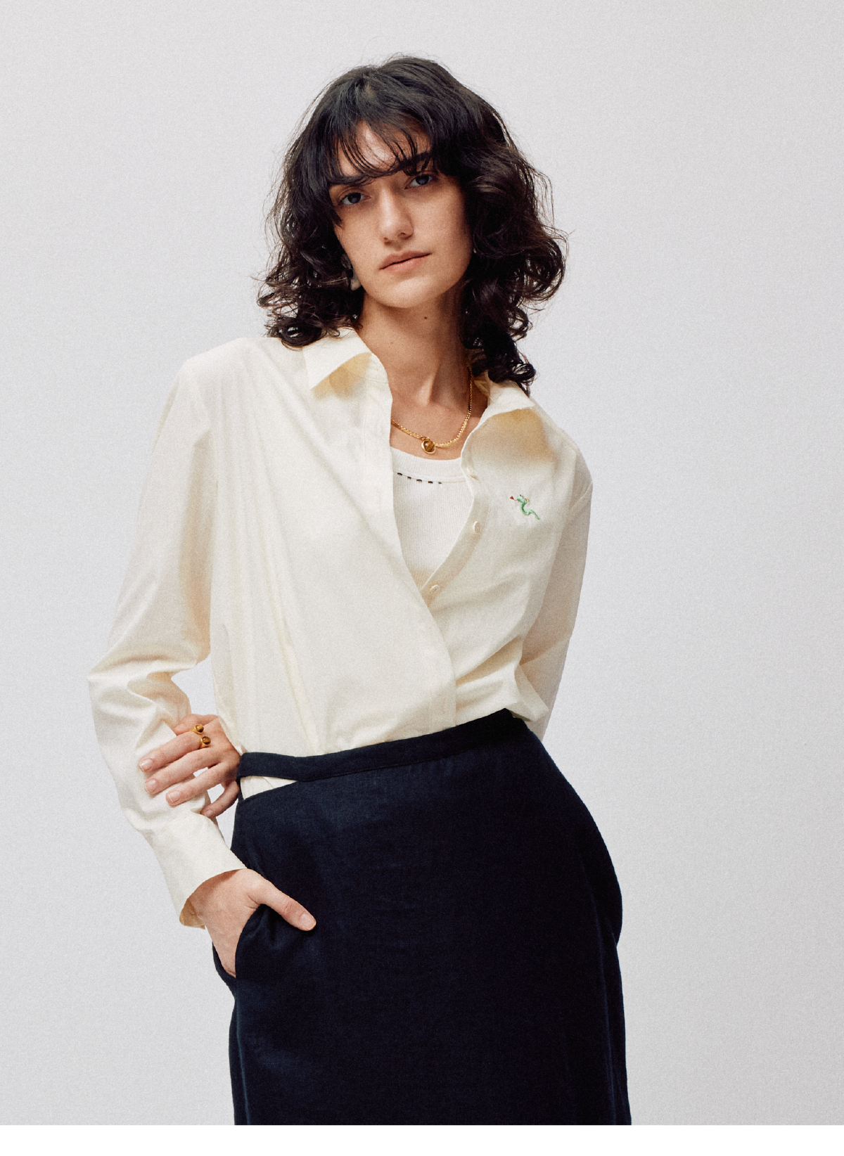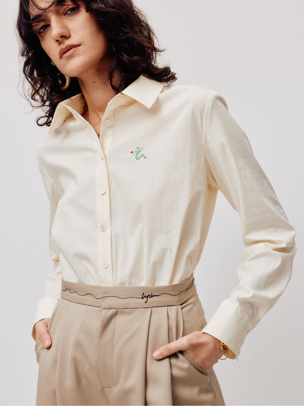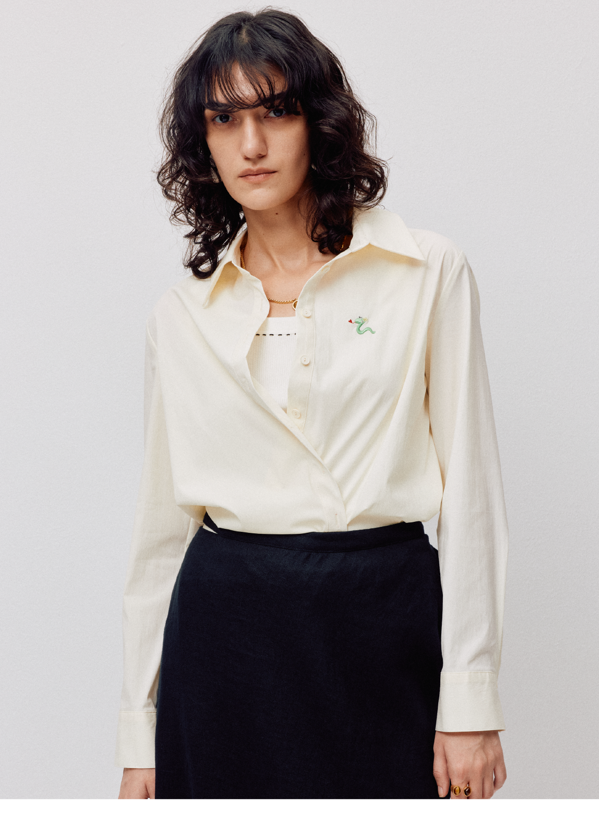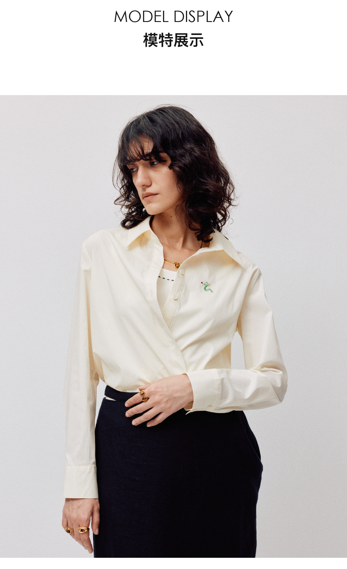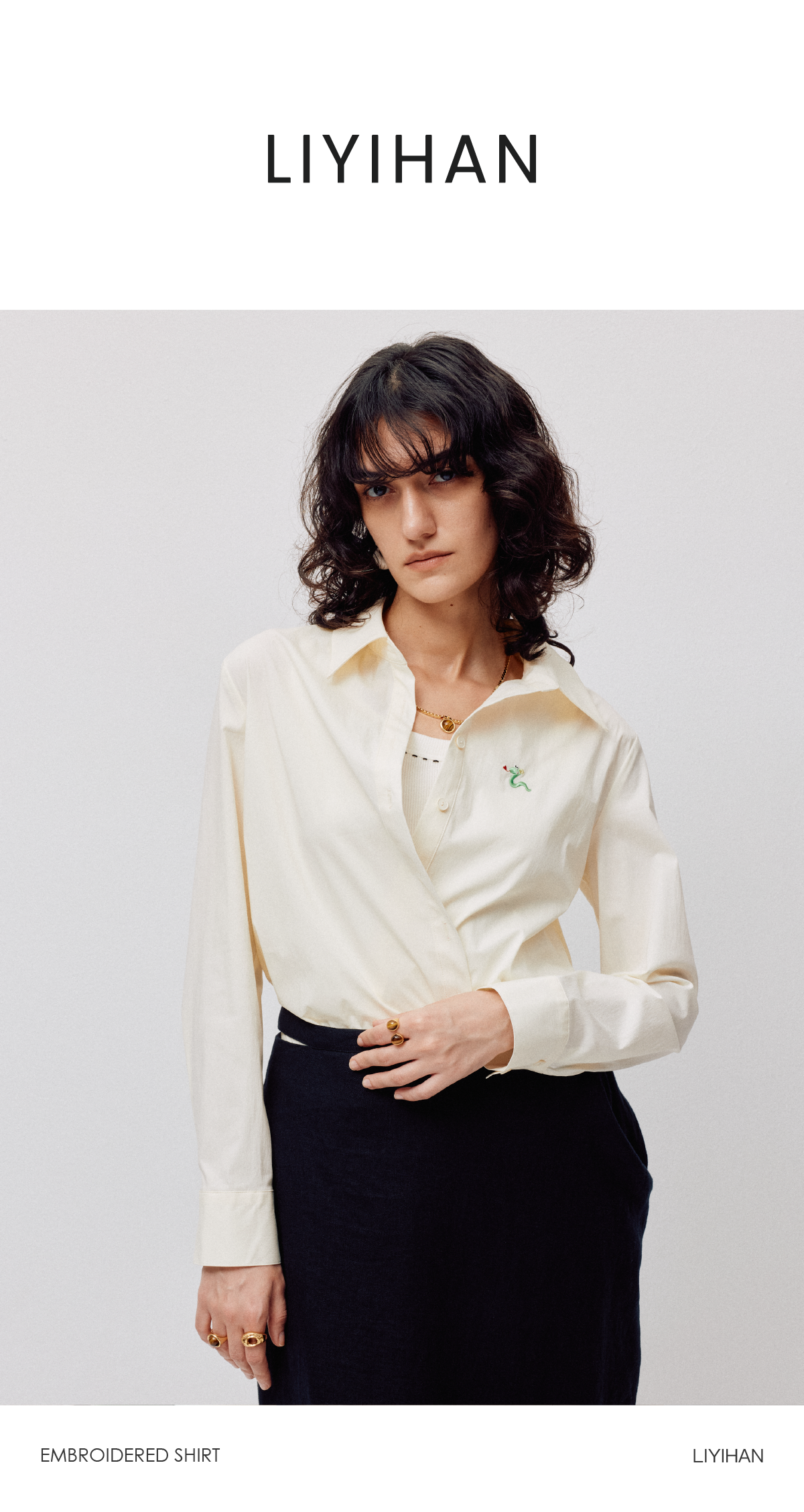 LIYIHAN 2026春季新款棉质刺绣通勤衬衫黄色女长袖上衣小众设计感