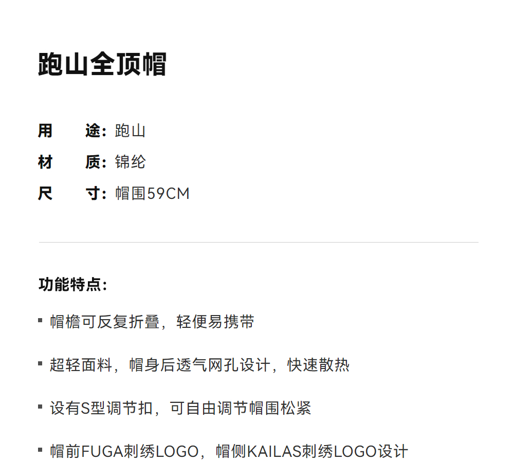 KAILAS凯乐石 户外运动 跑山全顶帽 KF2441502