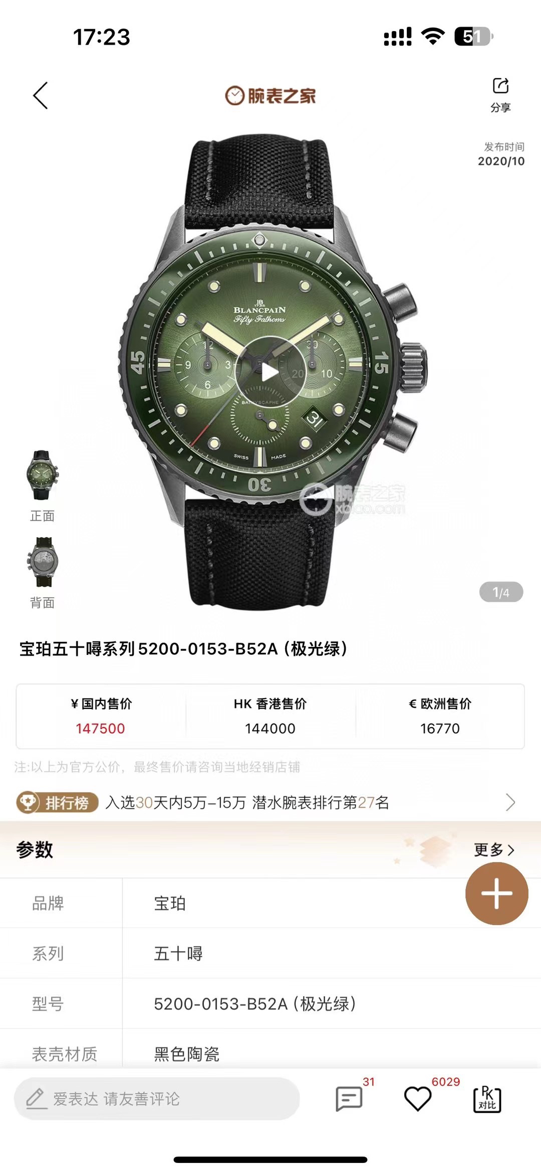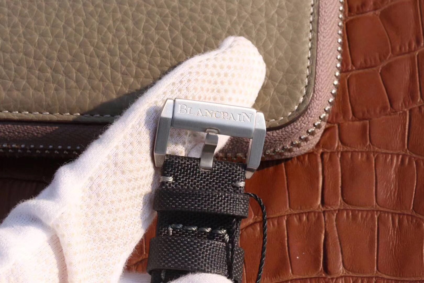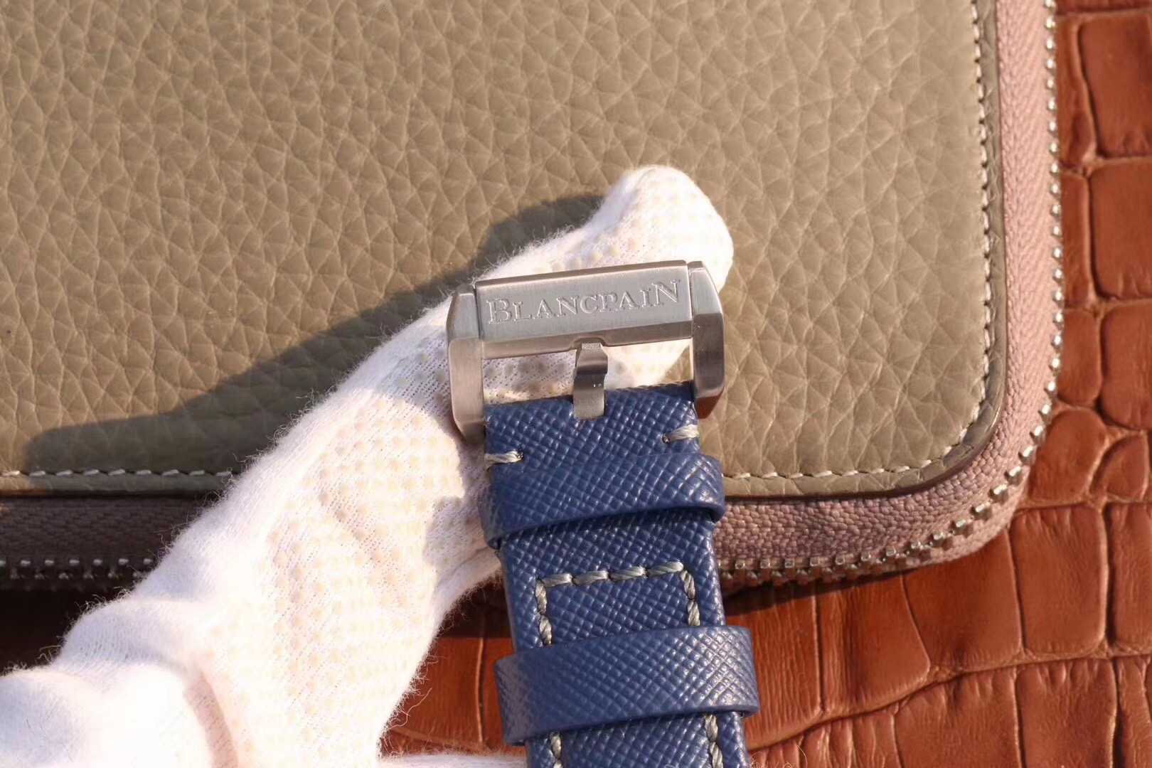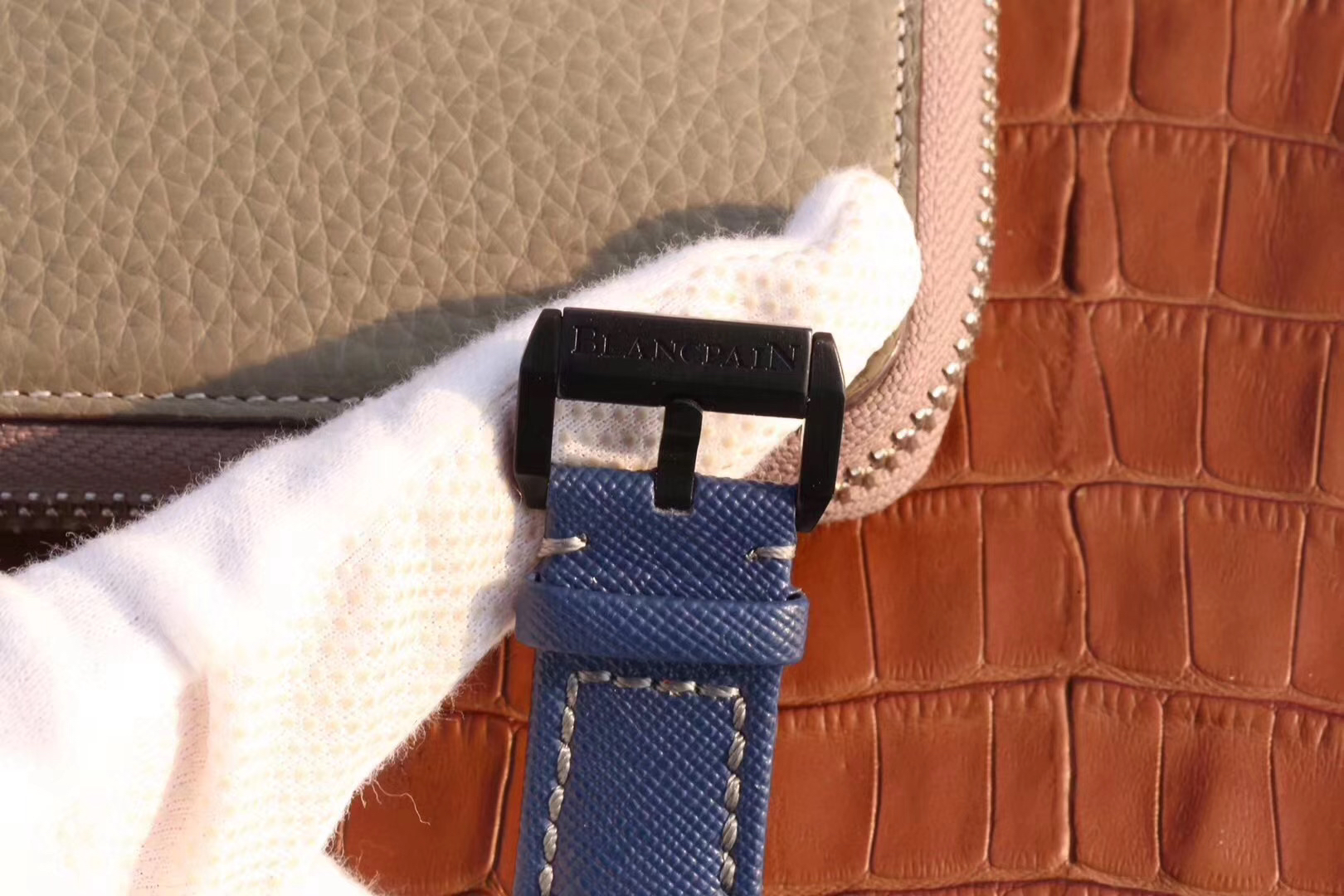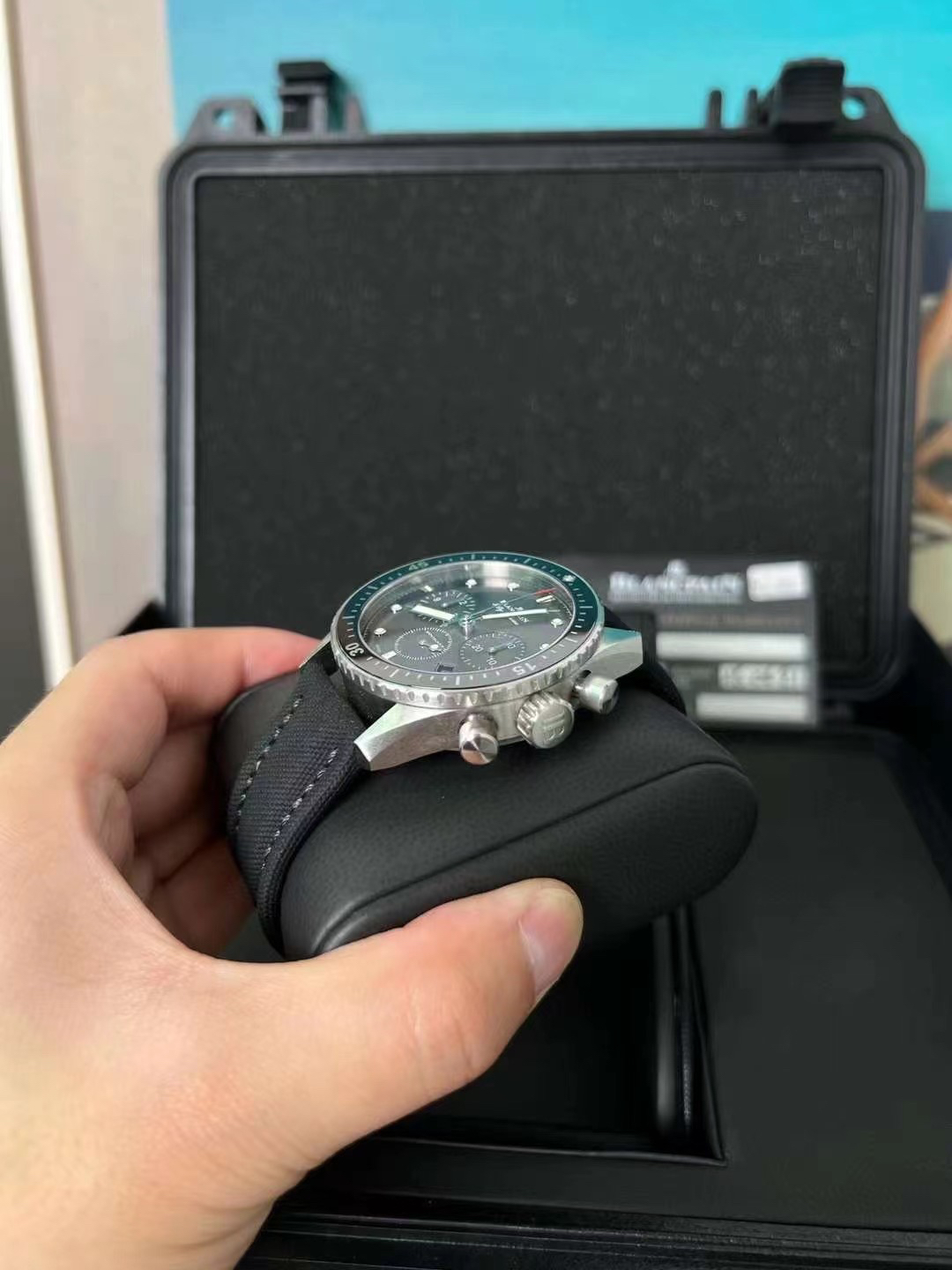 【毒物】宝珀五十噚系列5200-0153-B52A深潜器飞返计时码表问世了,低调中彰显不凡,采用进口泛蓝光蓝宝石玻璃,刀刮不留痕。腕表采用进口7750机芯改原版F385自动机械*日历窗口大小颜色与机芯功能完全对版专柜。直径:43.60mm。夹板宝石轴承颜色与原装一致,真正做到色泽纯良,让夹板不再一眼假!一体式夹板,除了外观更接近原装之余还能更好的保护机芯,质量更稳定!夹板经过研磨处理之后再做倒角加工,历时12个月慢工细琢只为了避免夹板的铜屑跌落机芯而导致机芯偷停。【表盘】日历大小对版,100%瑞士进口C3夜光,亮度持久度直逼原装正品!【防水】出厂100%三度防水测试。The customized version is the only version available in the market.