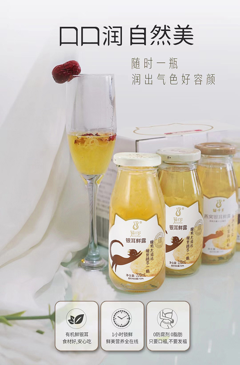 【猫千岁银耳鲜露】冰糖红枣枸杞汁早餐营养滋补饮品