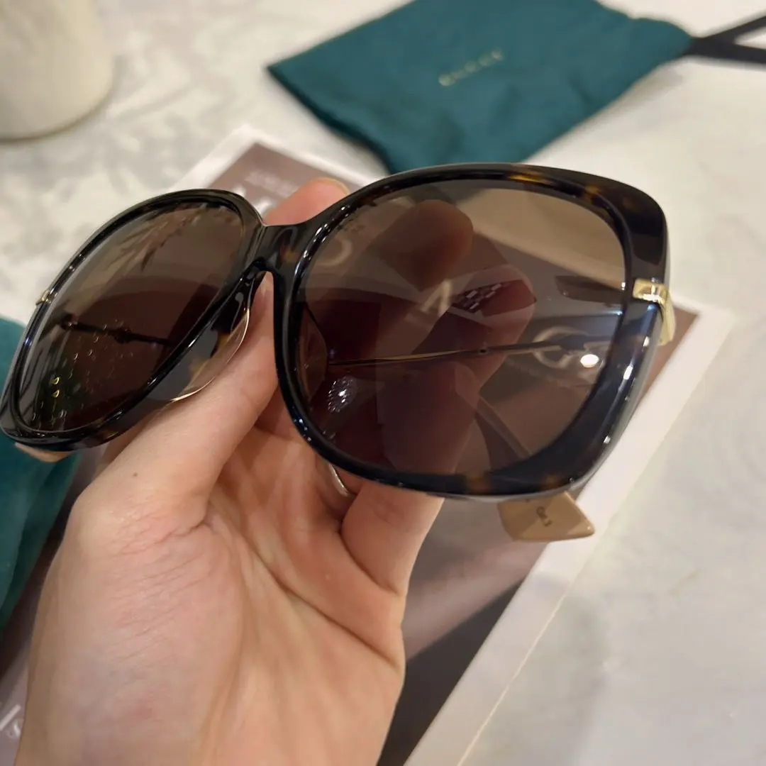 【商品详情】正品二手 Gucci 玳瑁色 猫眼 墨镜🕶️97新 14*7。配件:防尘袋 盒子。酷飒登场