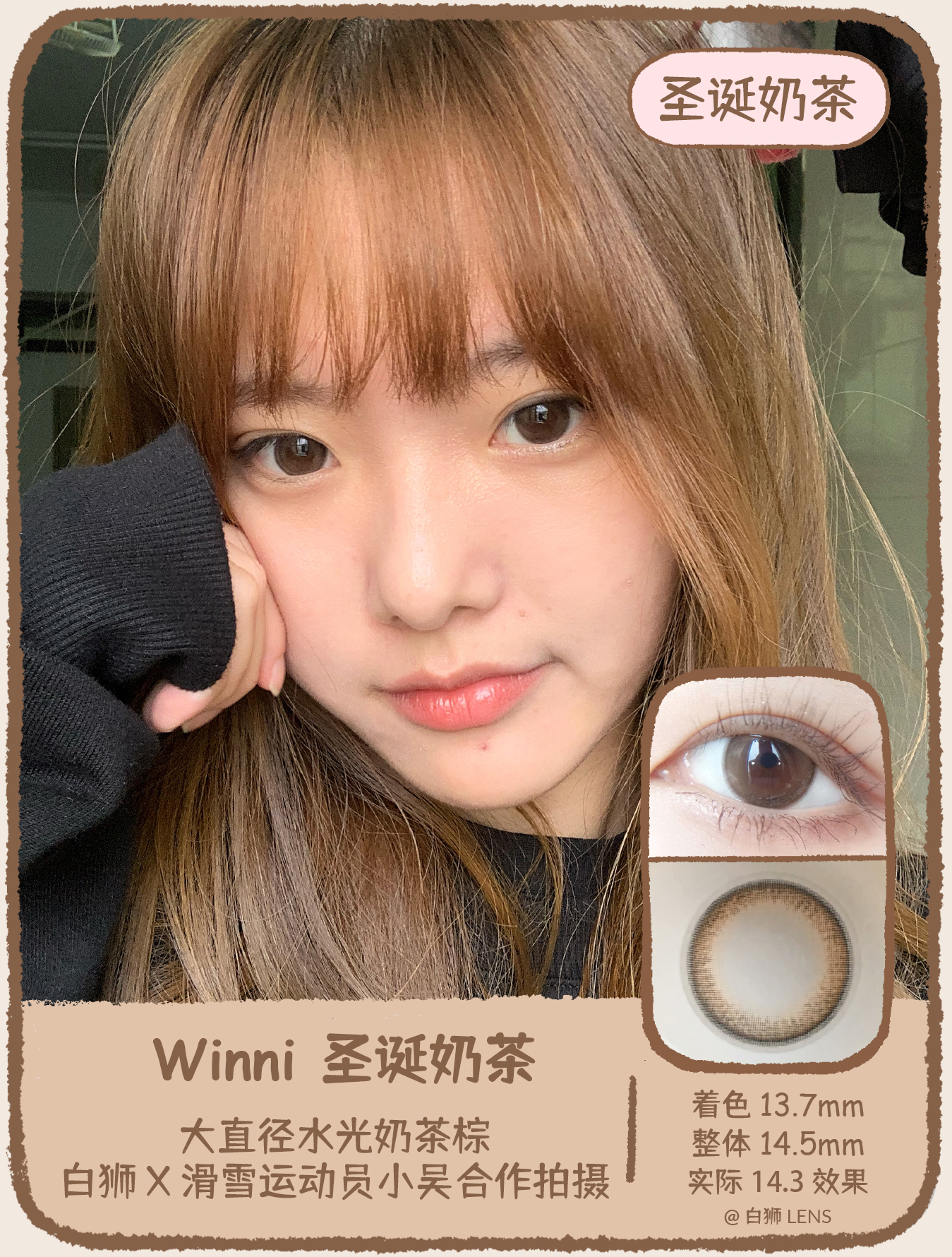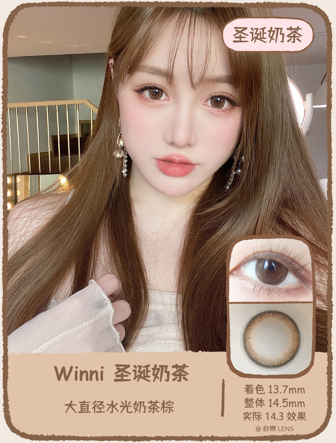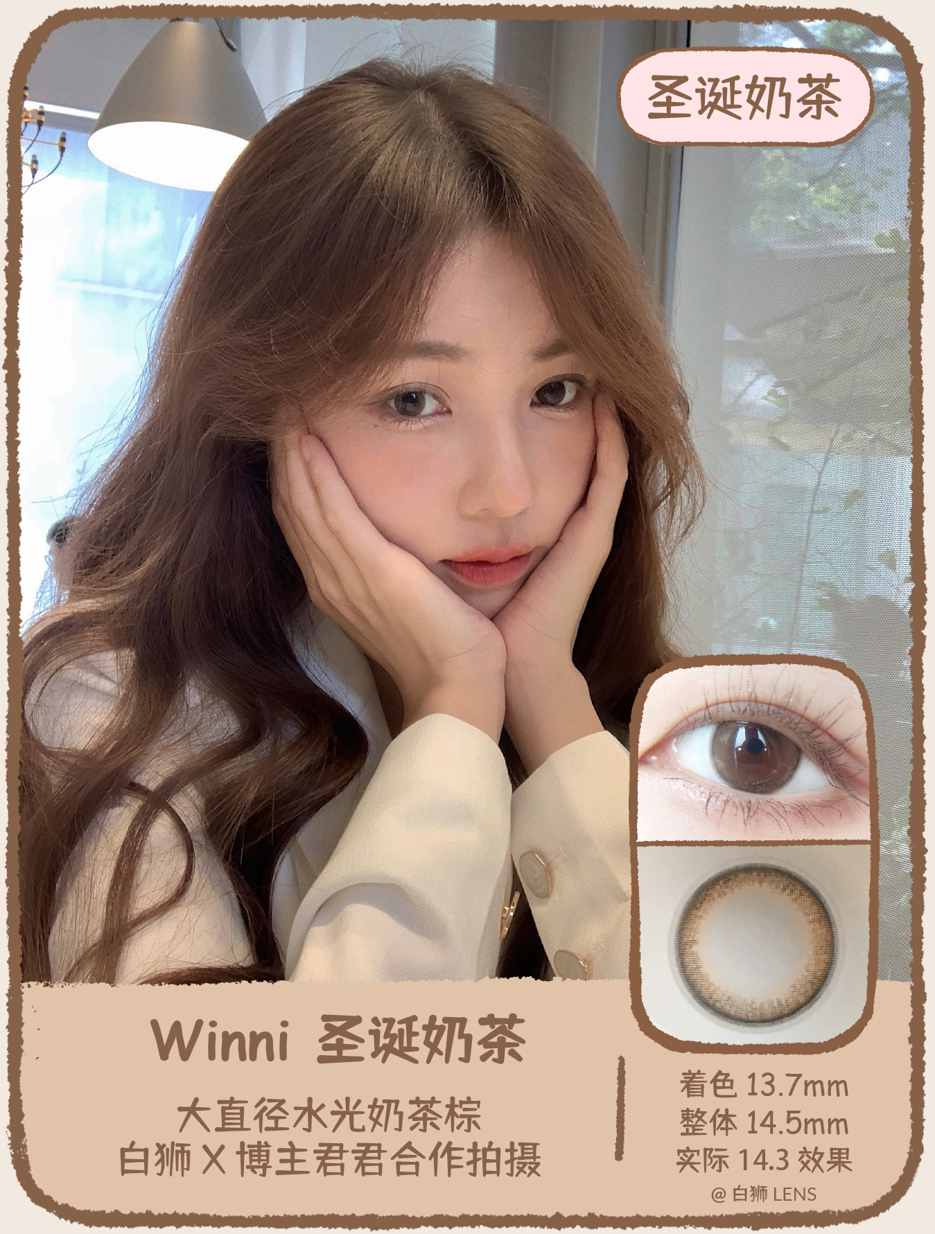 winni旗下【白狮推荐!】Hebe Brown圣诞奶茶|白狮X王涵同款|年抛 包装14.5 实际14.3mm效果放大直径 没有很夸张但也不小|眼睛中等都可尝试|韩国icodi工厂