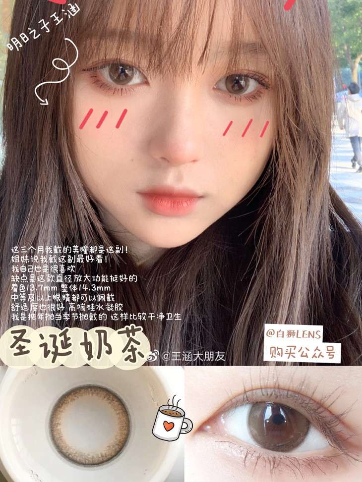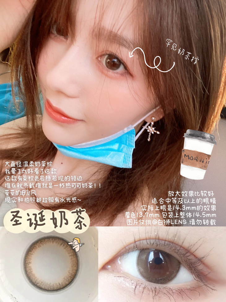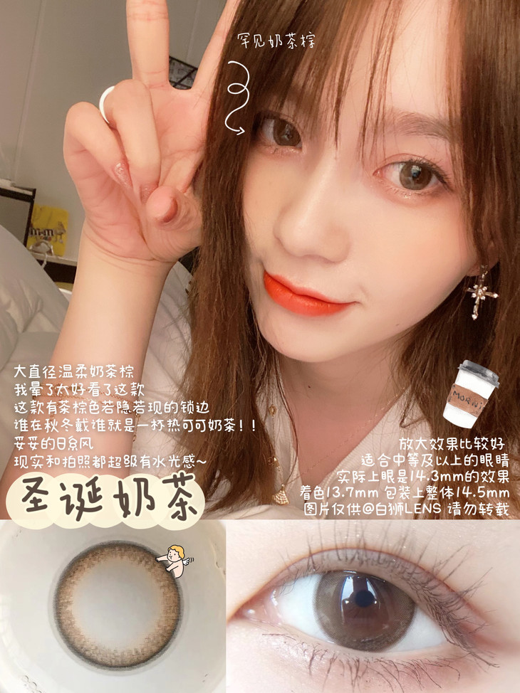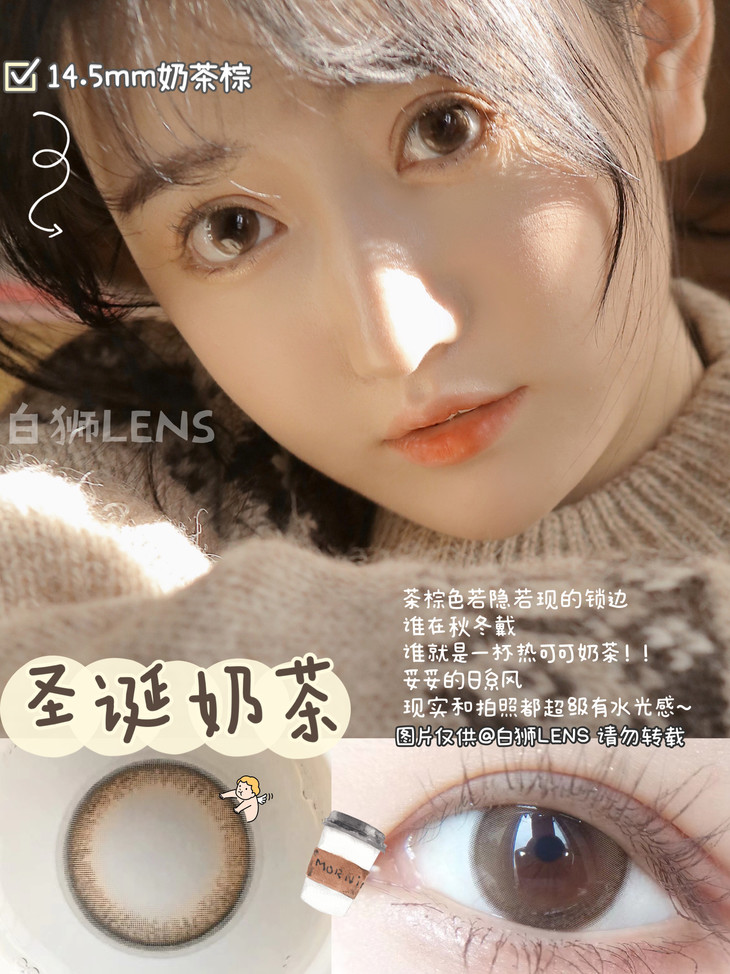 winni旗下【白狮推荐!】Hebe Brown圣诞奶茶|白狮X王涵同款|年抛 包装14.5 实际14.3mm效果放大直径 没有很夸张但也不小|眼睛中等都可尝试|韩国icodi工厂
