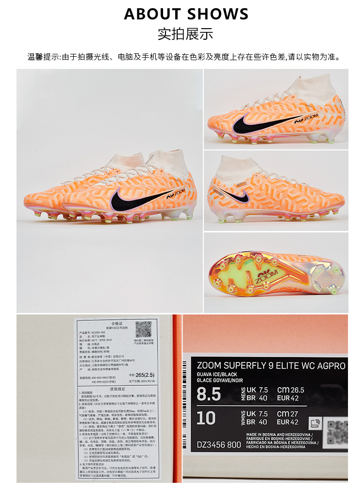 【现货秒发】SFS耐克Nike刺客15超高端AG-pro缓震Zoom人造草足球鞋DZ3456-800