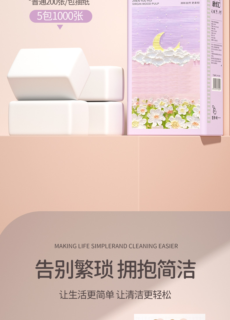 「一包抵多包!加大容量」1280张悬挂式抽纸居家日用实惠面巾纸加大加厚纸巾亲肤柔软面巾纸