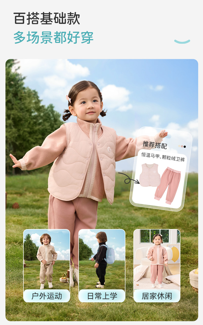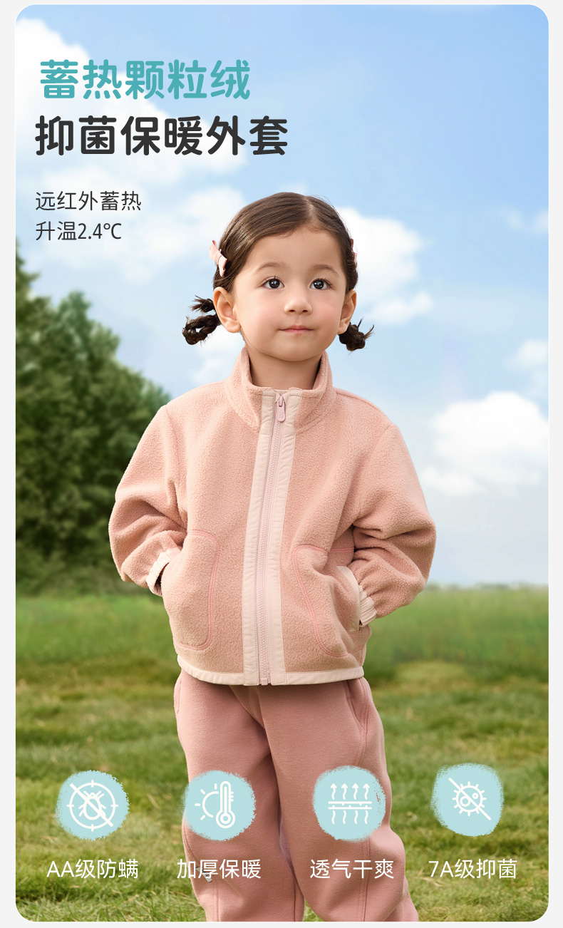 【99元起】i-baby高强蓄热颗粒绒抑菌保暖立领外套卫裤儿童秋冬款外套套装
