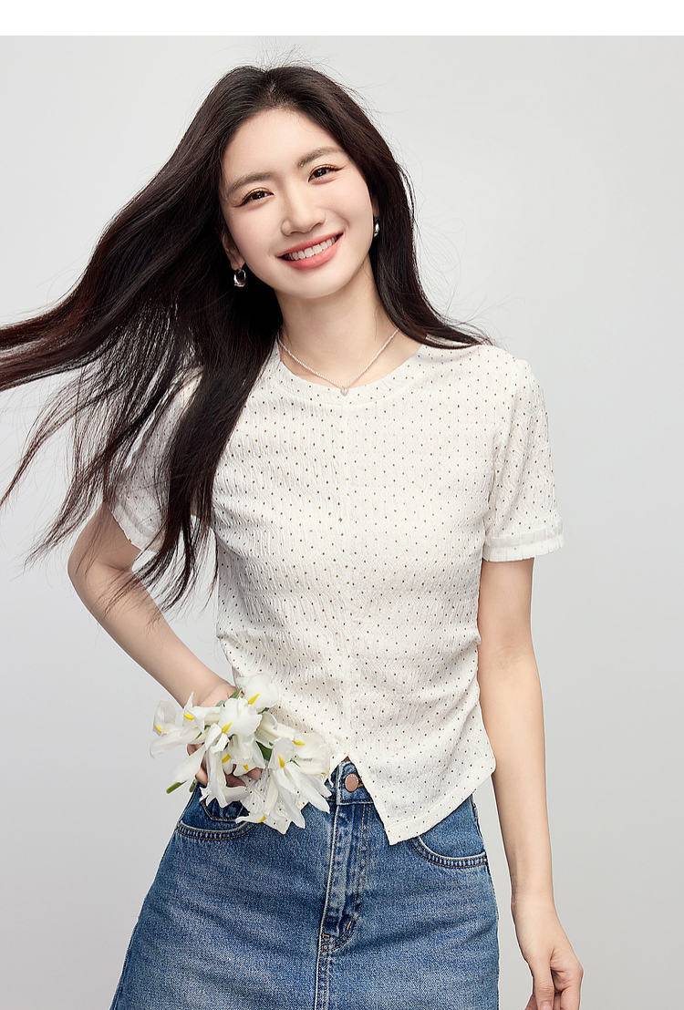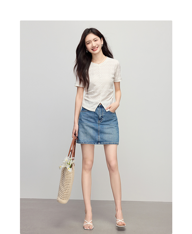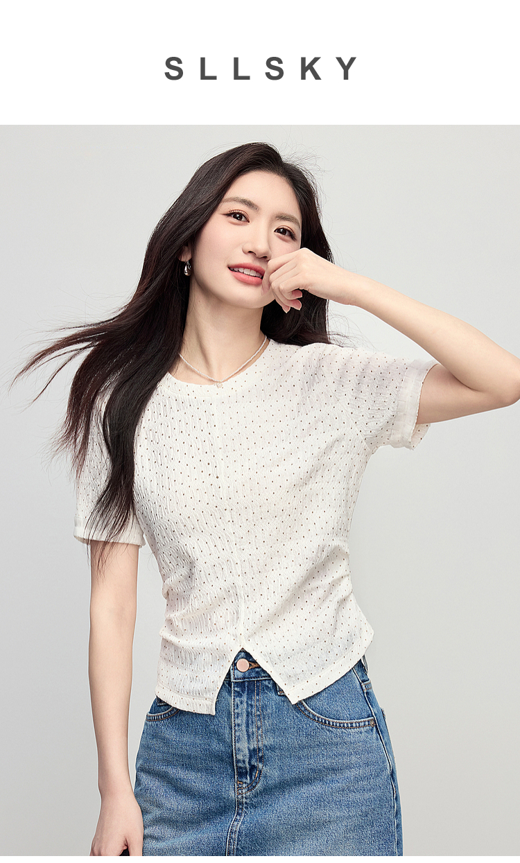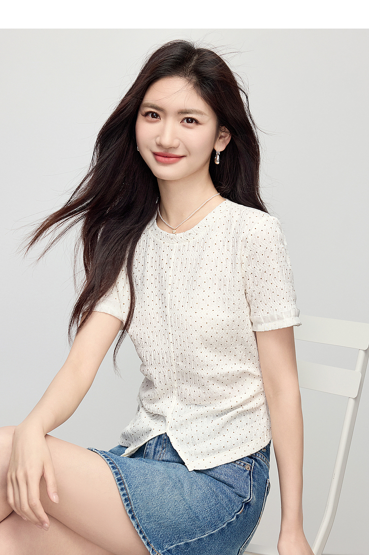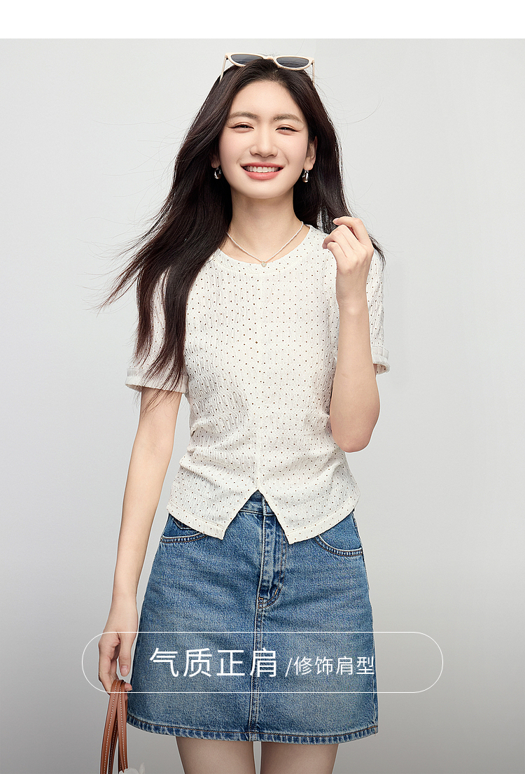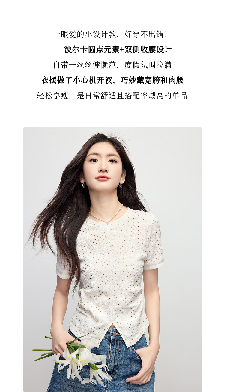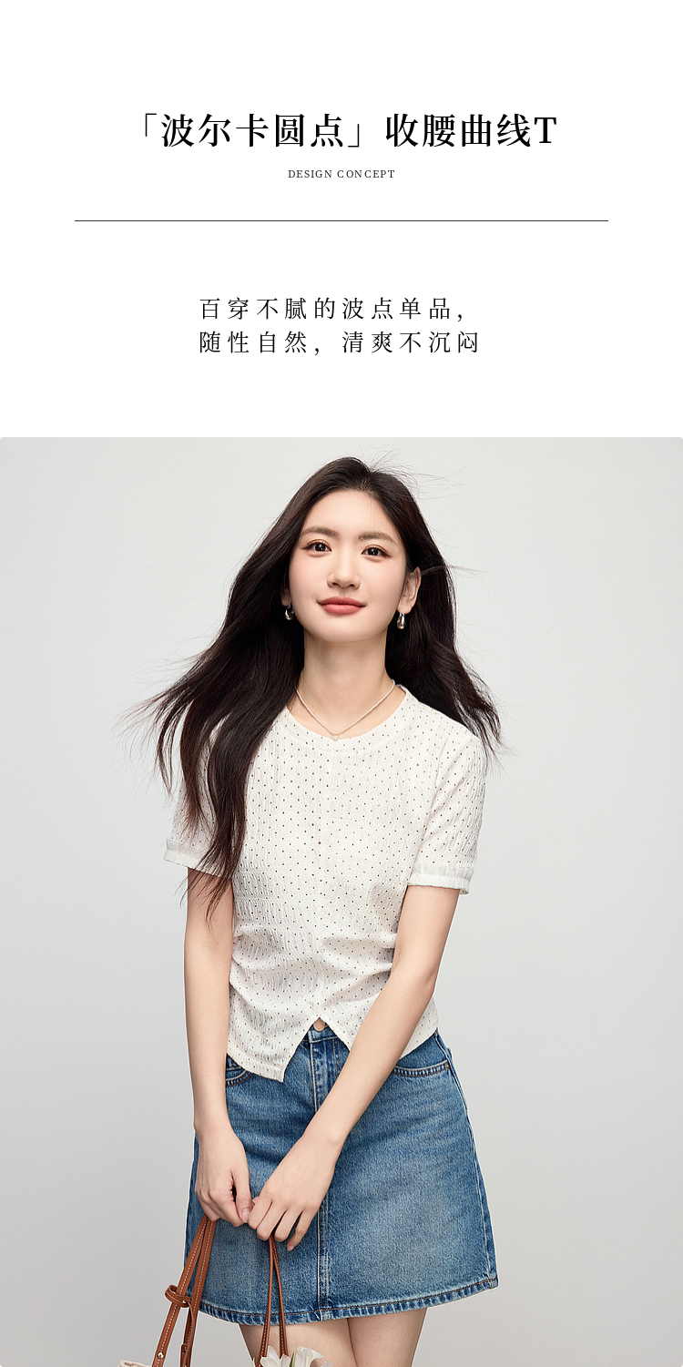 【专属特价】熙世界波尔卡波点短袖T恤女收腰显瘦2025夏日新款设计感修身上衣