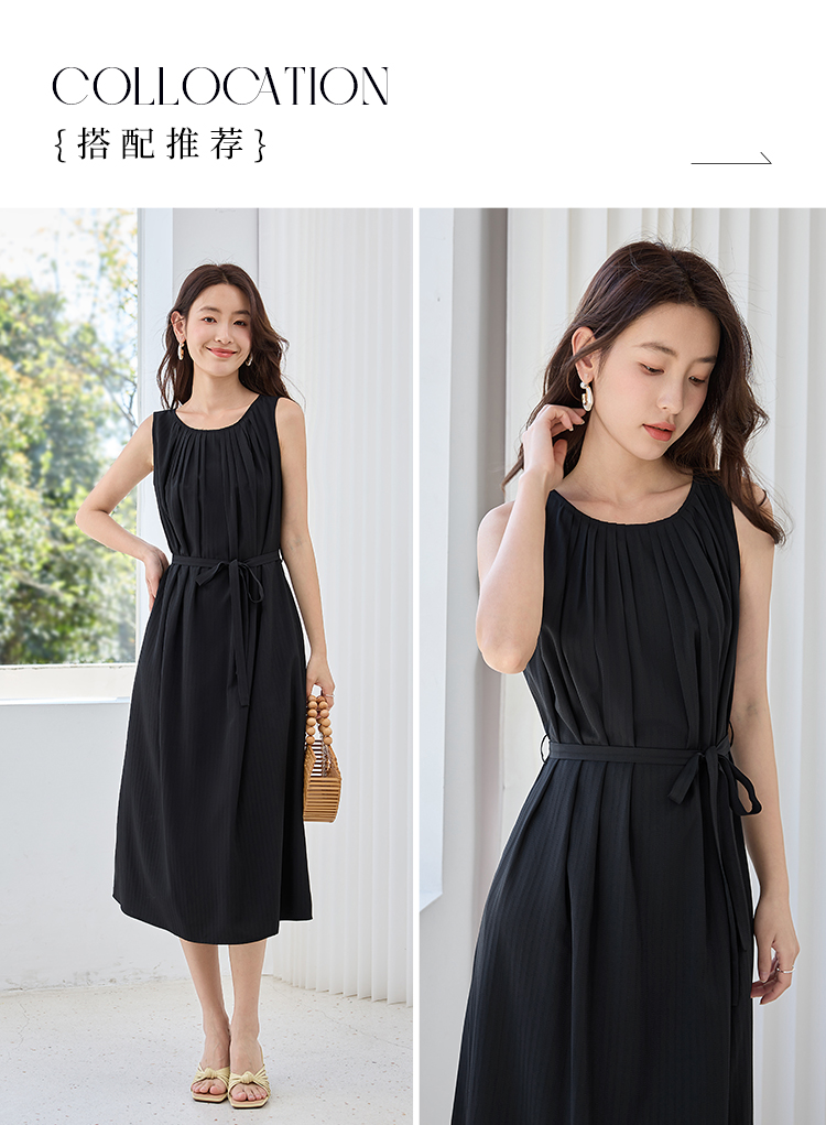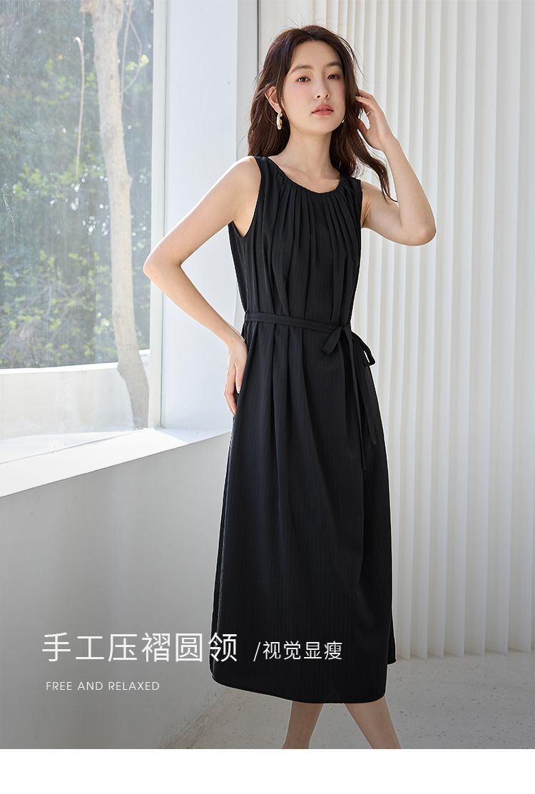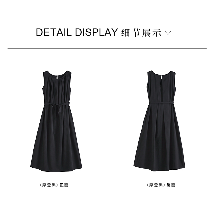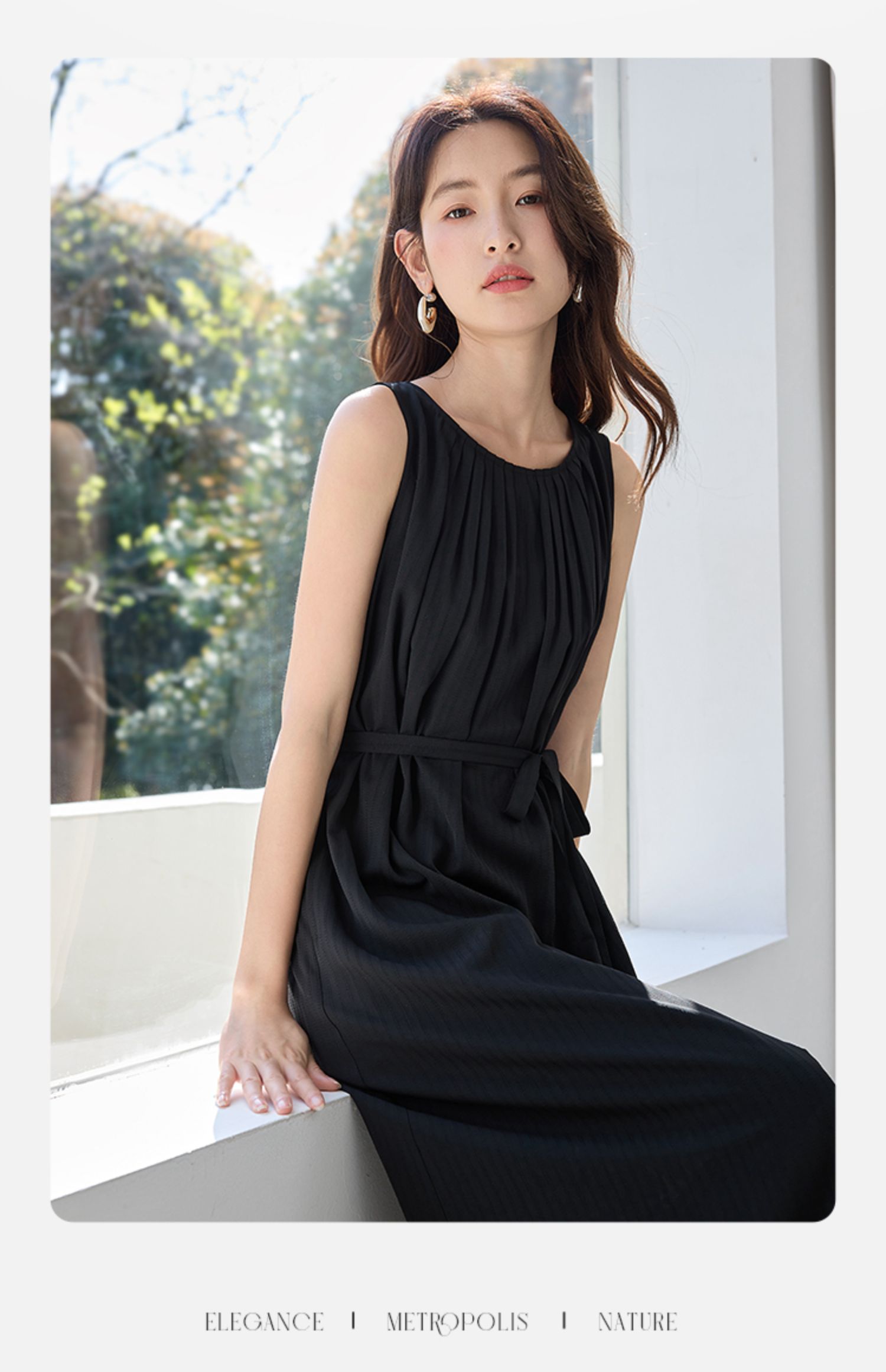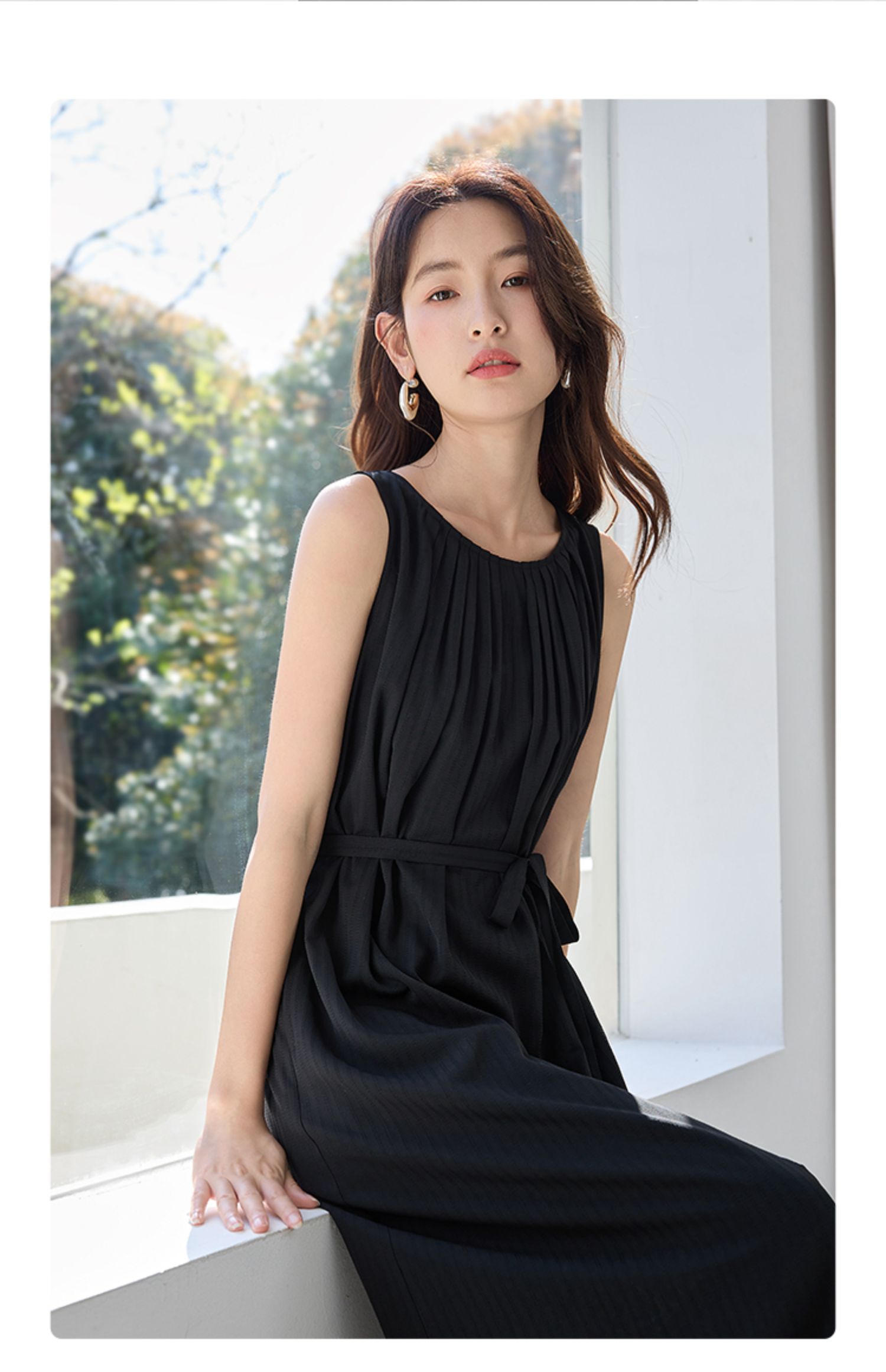 【专属特价】熙世界赫本风黑色无袖连衣裙2025夏装新款收腰系带裙子法式长裙