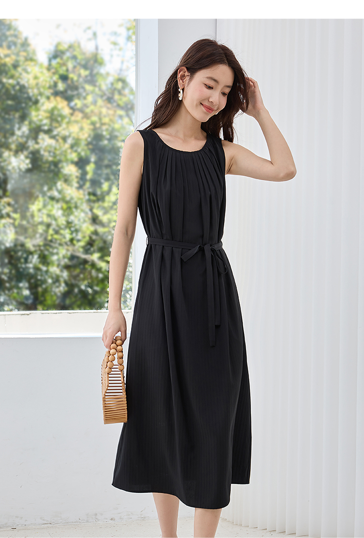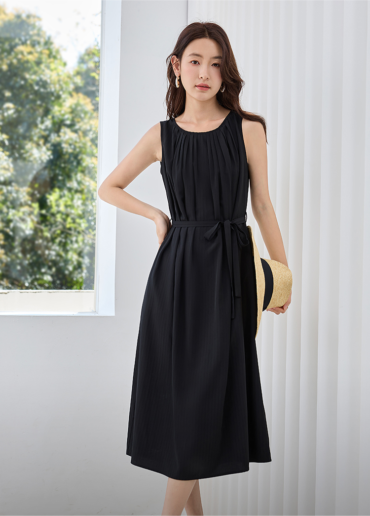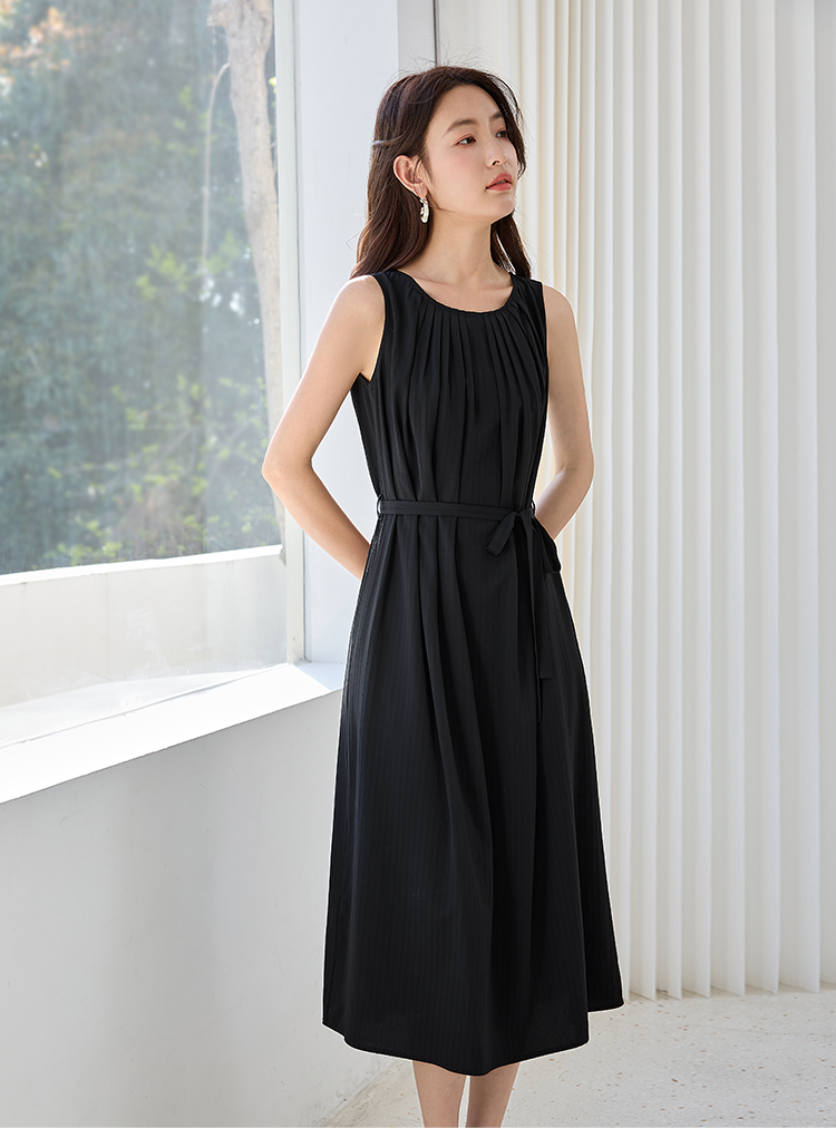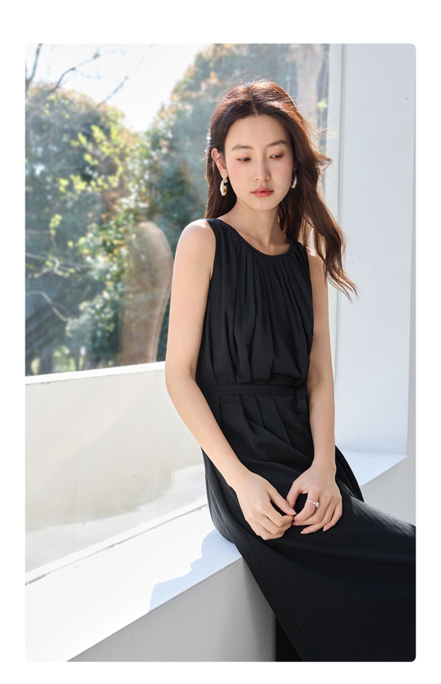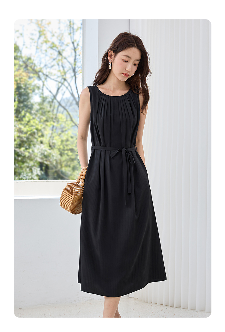 【专属特价】熙世界赫本风黑色无袖连衣裙2025夏装新款收腰系带裙子法式长裙