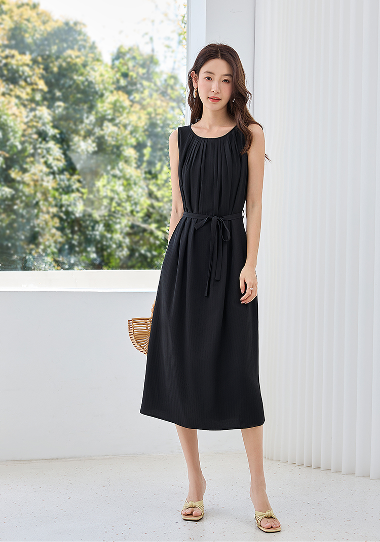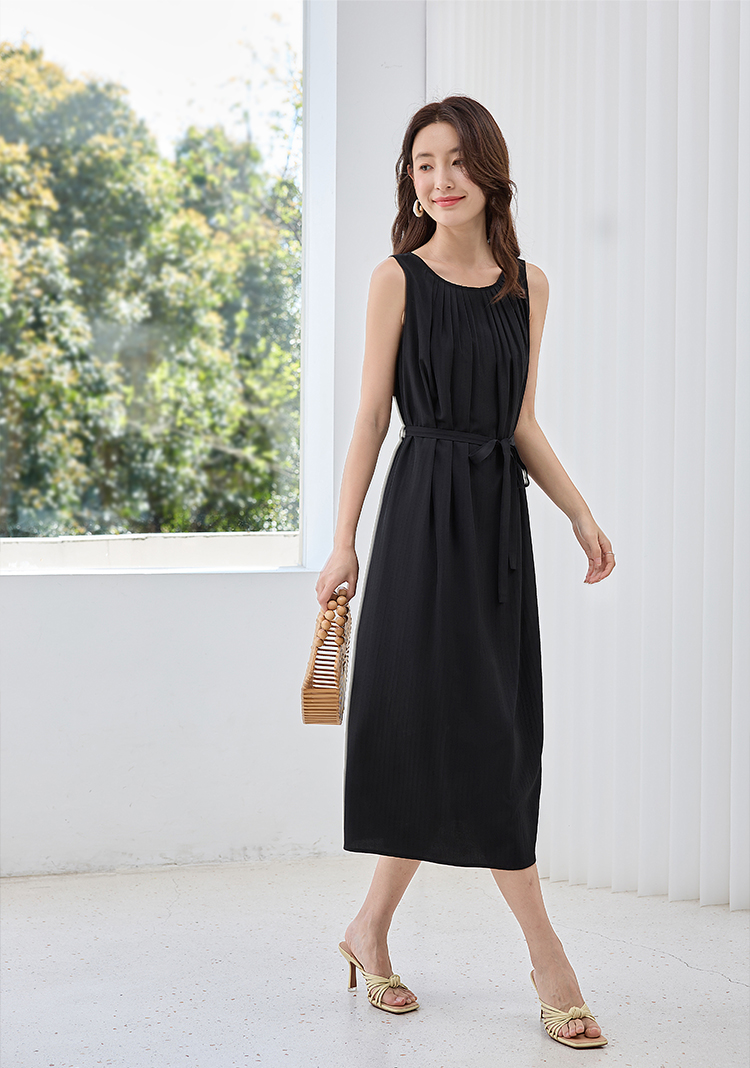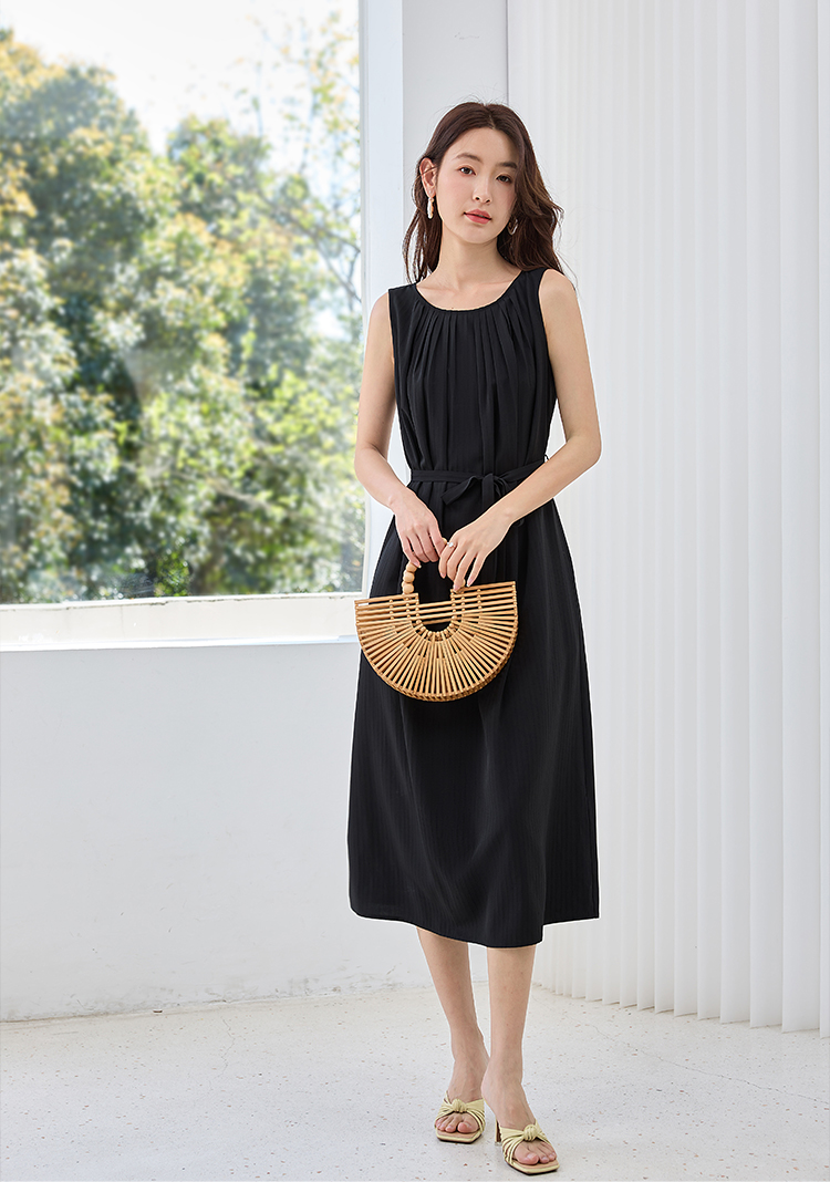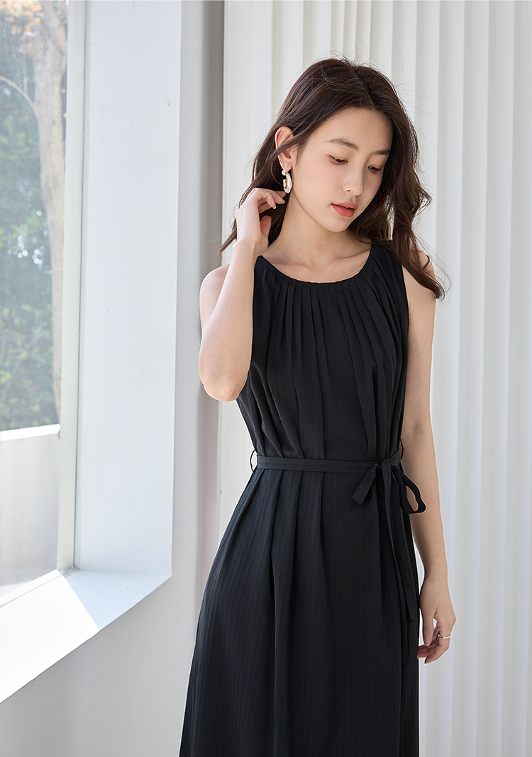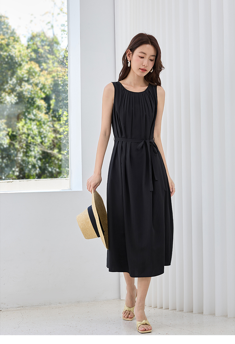 【专属特价】熙世界赫本风黑色无袖连衣裙2025夏装新款收腰系带裙子法式长裙