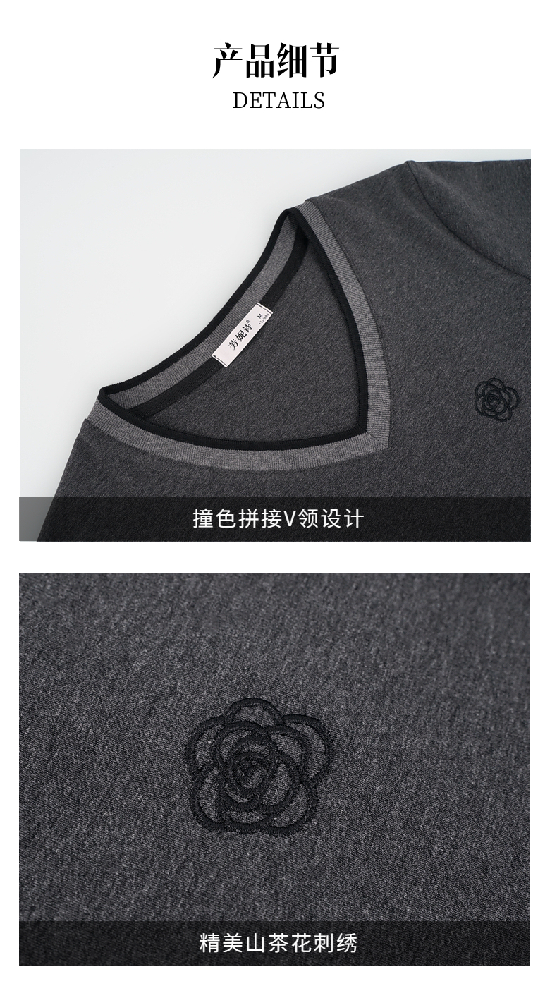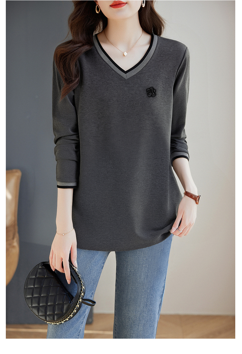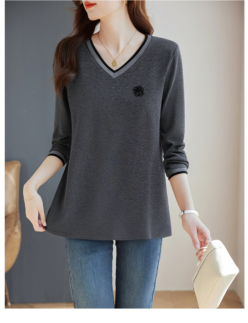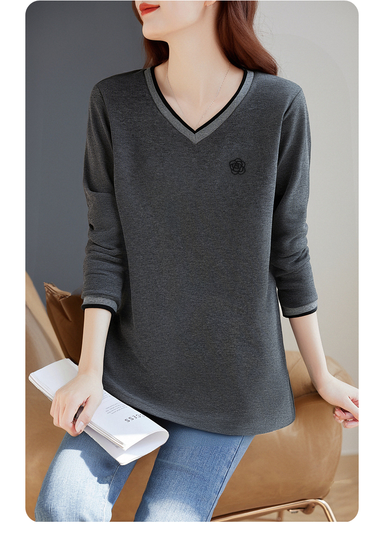 宽松长袖t恤女士春秋季新款妈妈上衣胖mm大码女装洋气v领打底衫女