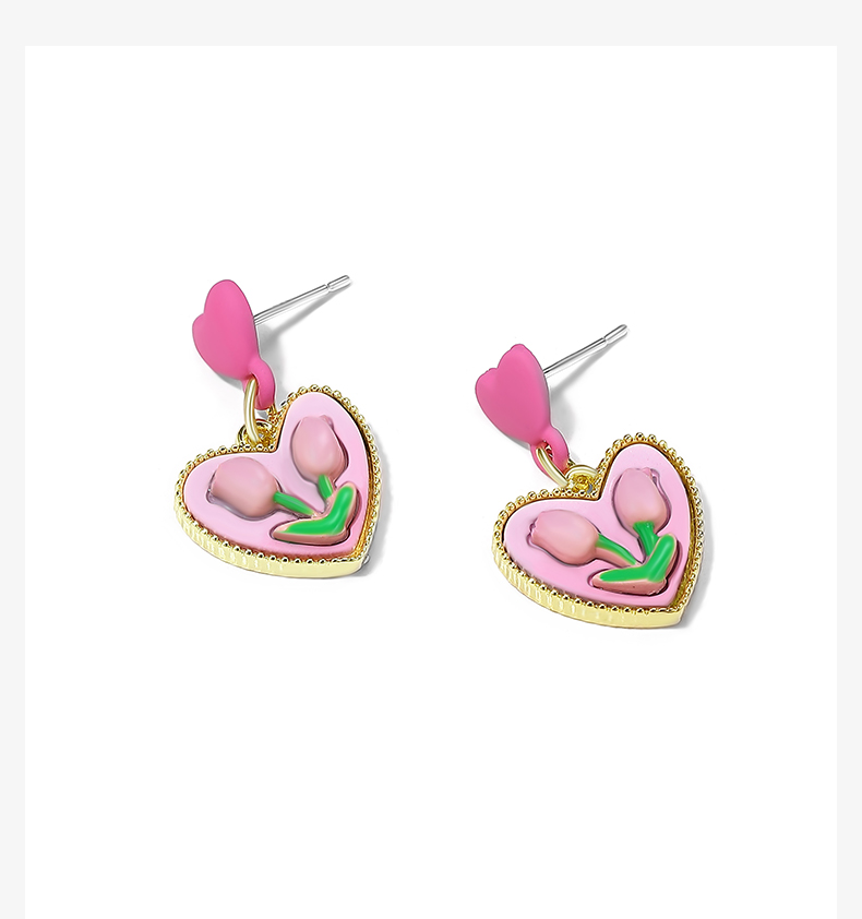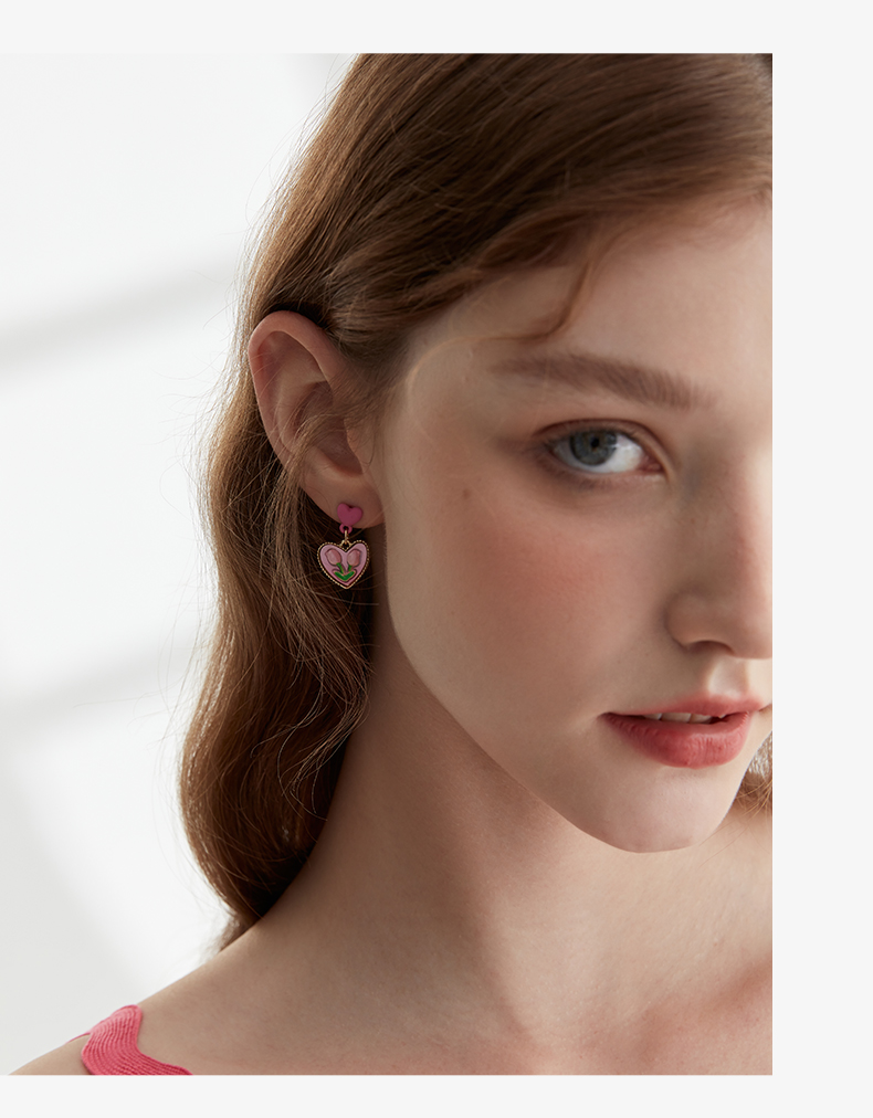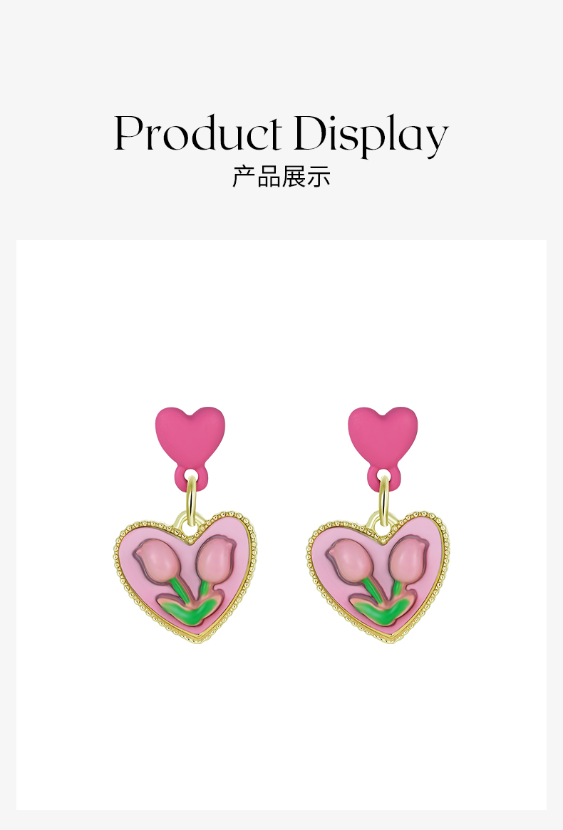 ZEGL郁金香花朵耳环女芭比风粉色爱心耳钉2023年新款小众设计耳饰