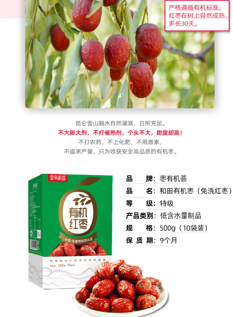 臻如意枣有机荟新疆和田红枣干货特级枣500g免洗即食煲汤泡茶