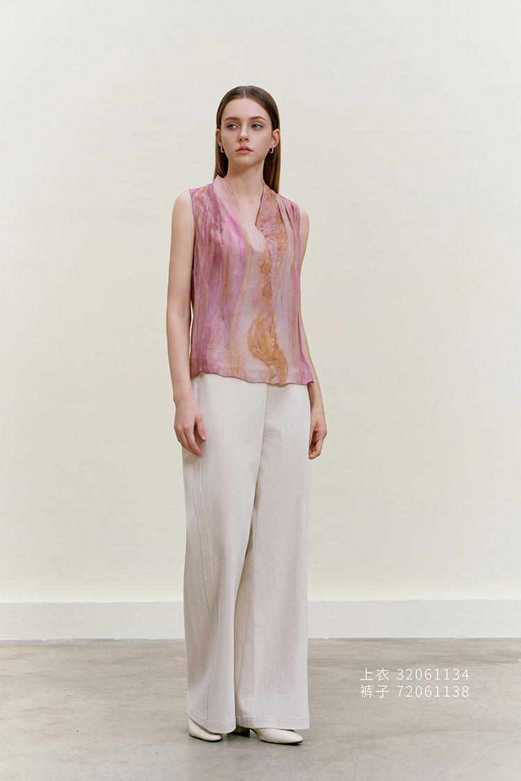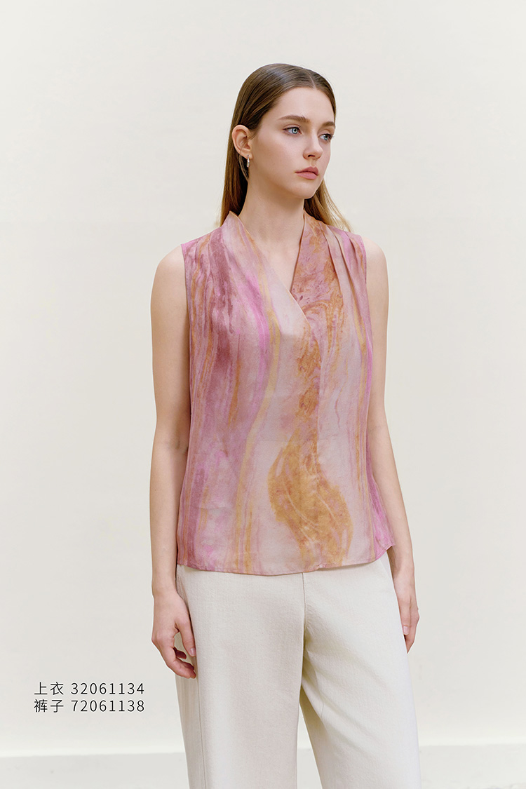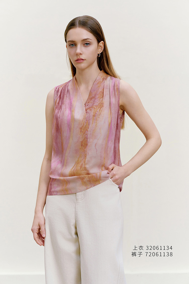 【桑蚕丝印花背心】26年春夏新品女士100%桑蚕丝V领真丝上衣