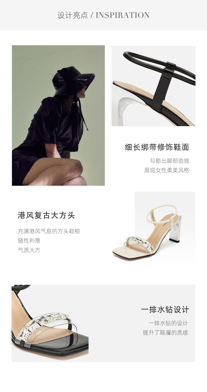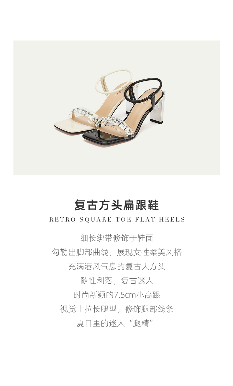 westory夏新细跟法式仙女风百搭铆钉舒适ins凉鞋51991