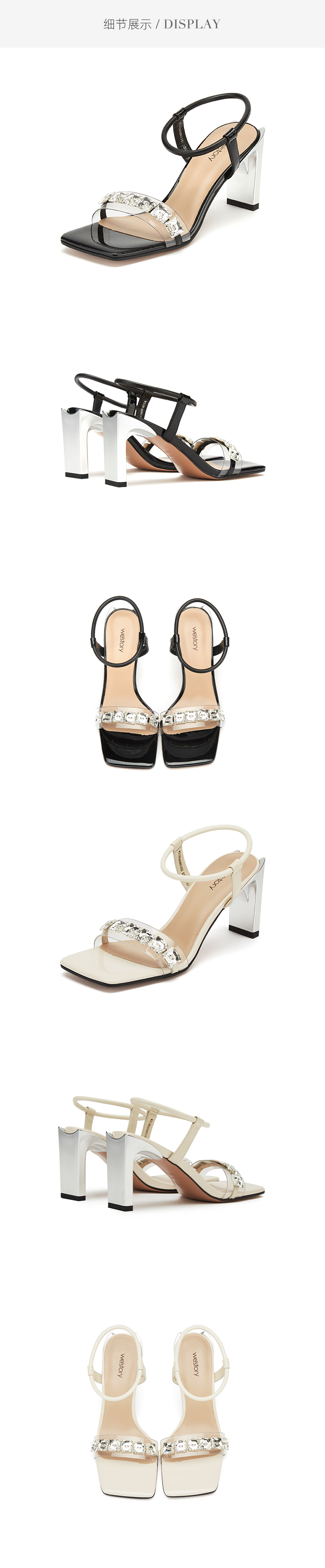 westory女鞋2021夏季新款尖头高跟鞋细跟后空包头凉鞋W21AH53031