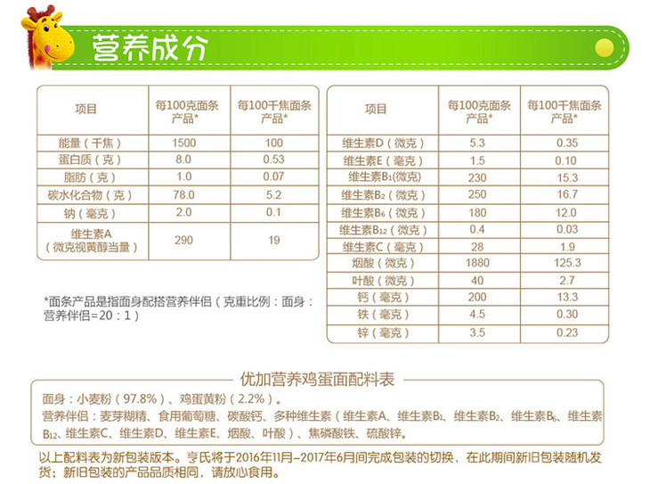 亨氏优加营养鸡蛋面条1*252G