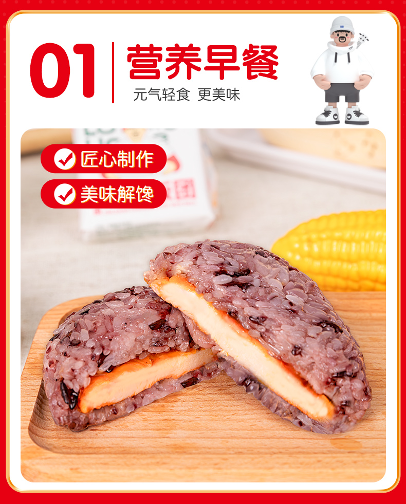 肥叔 多口味杂粮夹心饭团 精挑细选 香软糯米 精选早餐 72小时发货