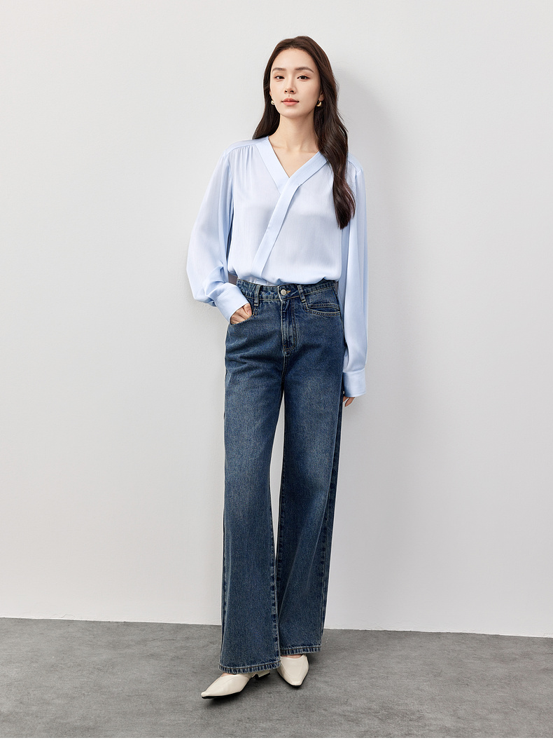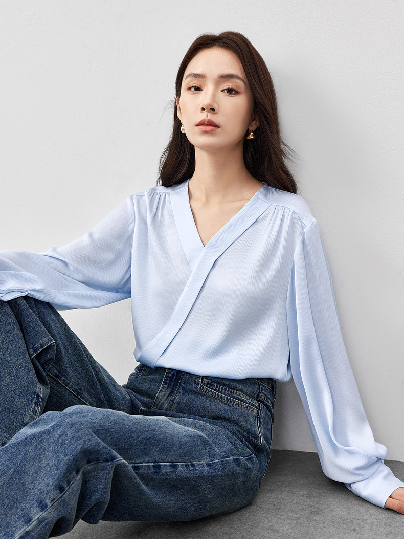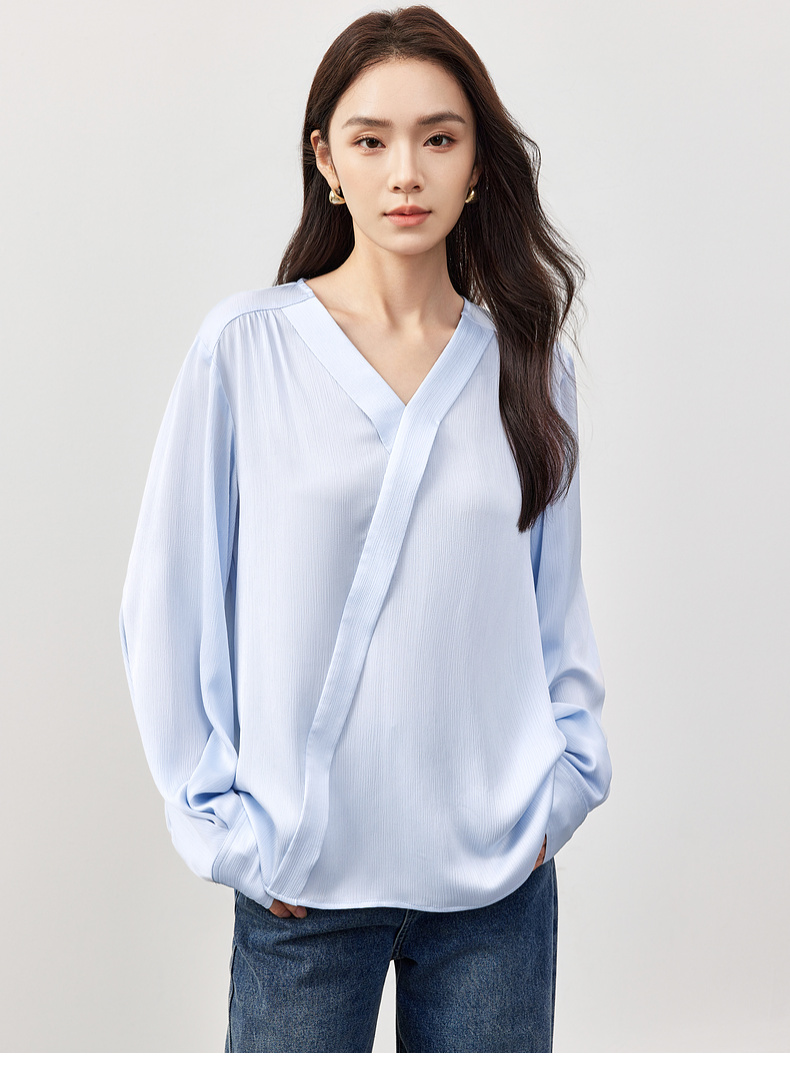 【内购】【轻职场衬衫】通勤气质V领交叠斜门襟条纹肌理轻薄空调衫衬衫-153CA3247X
