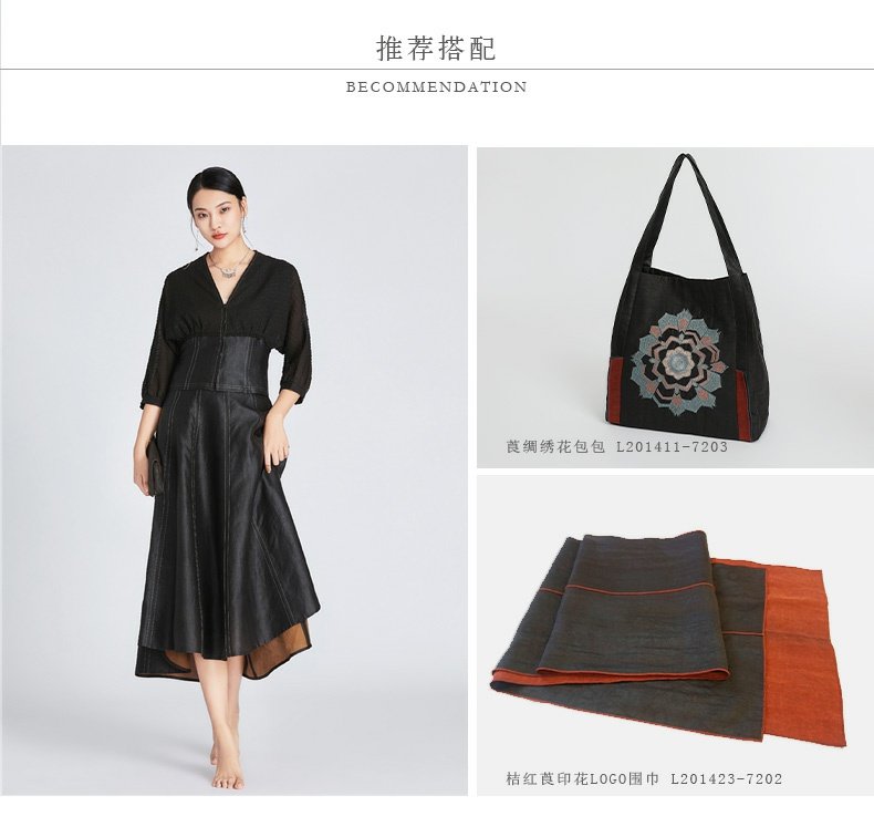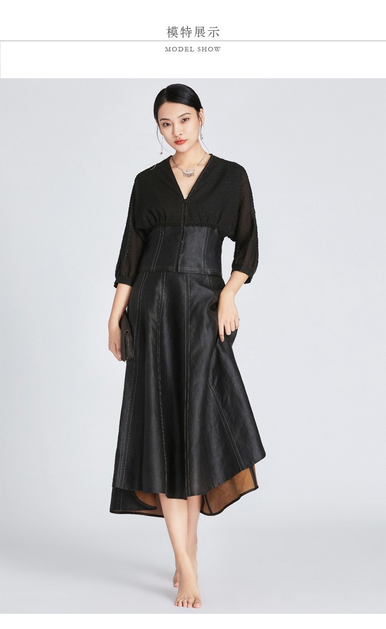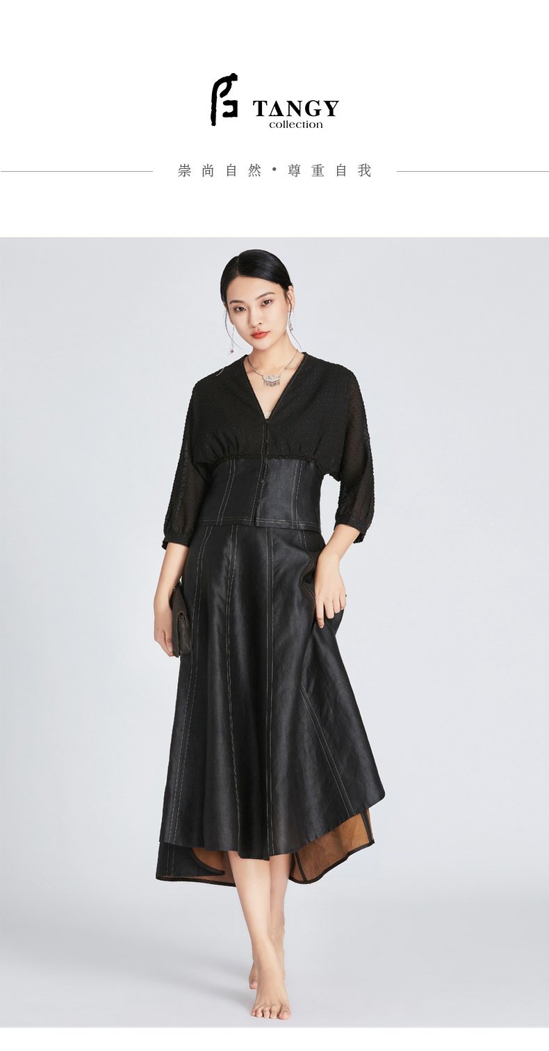 TANGY Collection/天意精品莨绸高腰线迹半裙