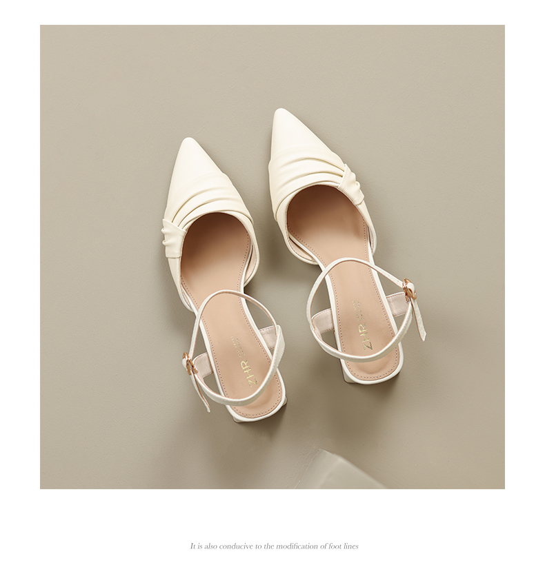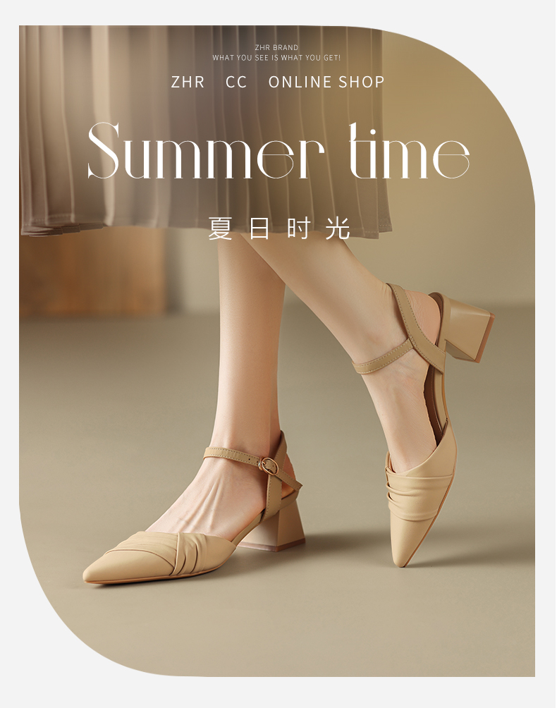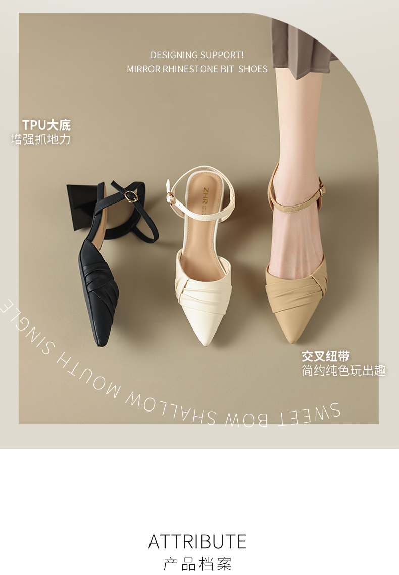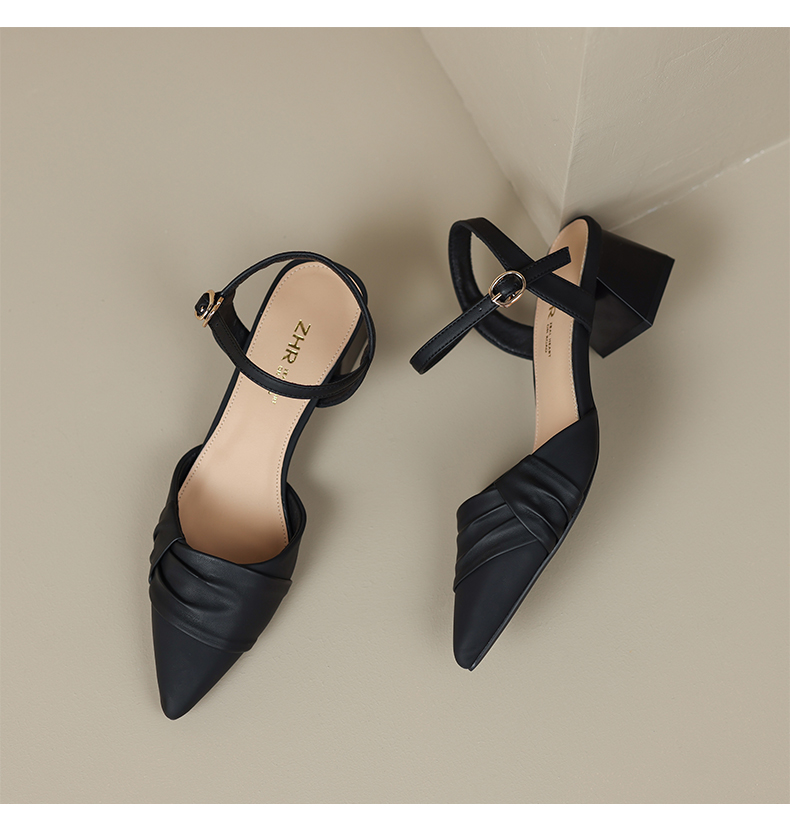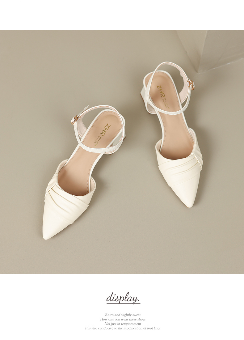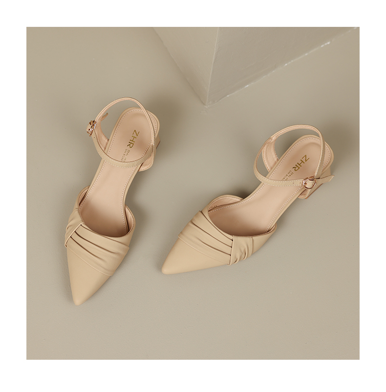 ZHR尖头单凉鞋女2023新款夏季韩版百搭包头时装一字扣带凉鞋气质