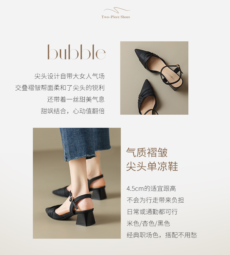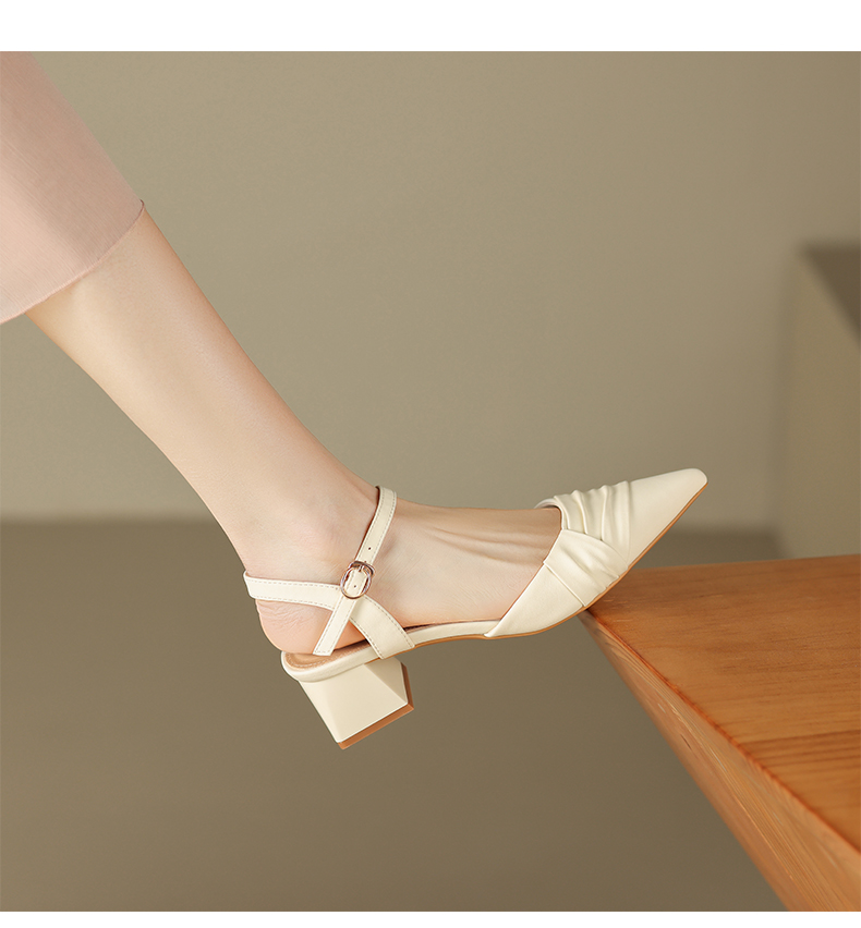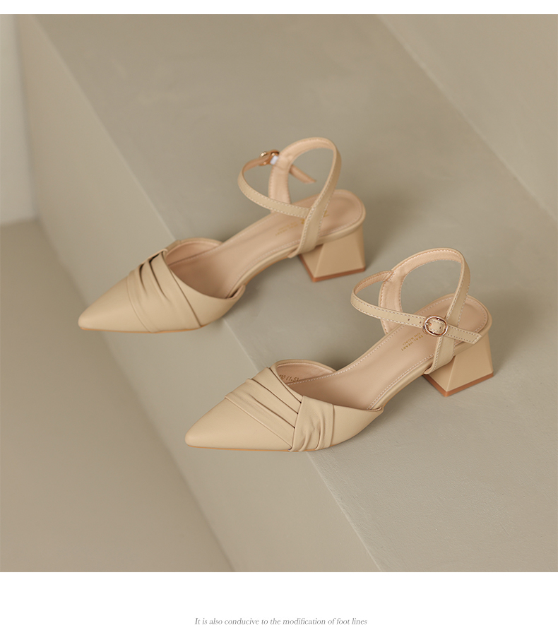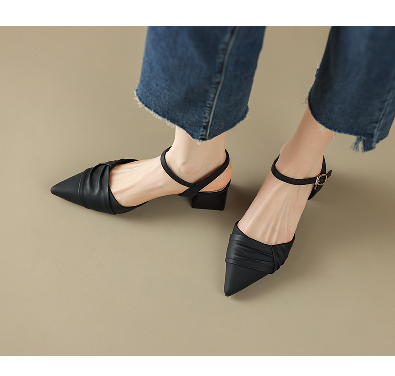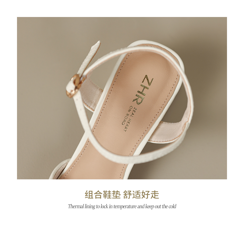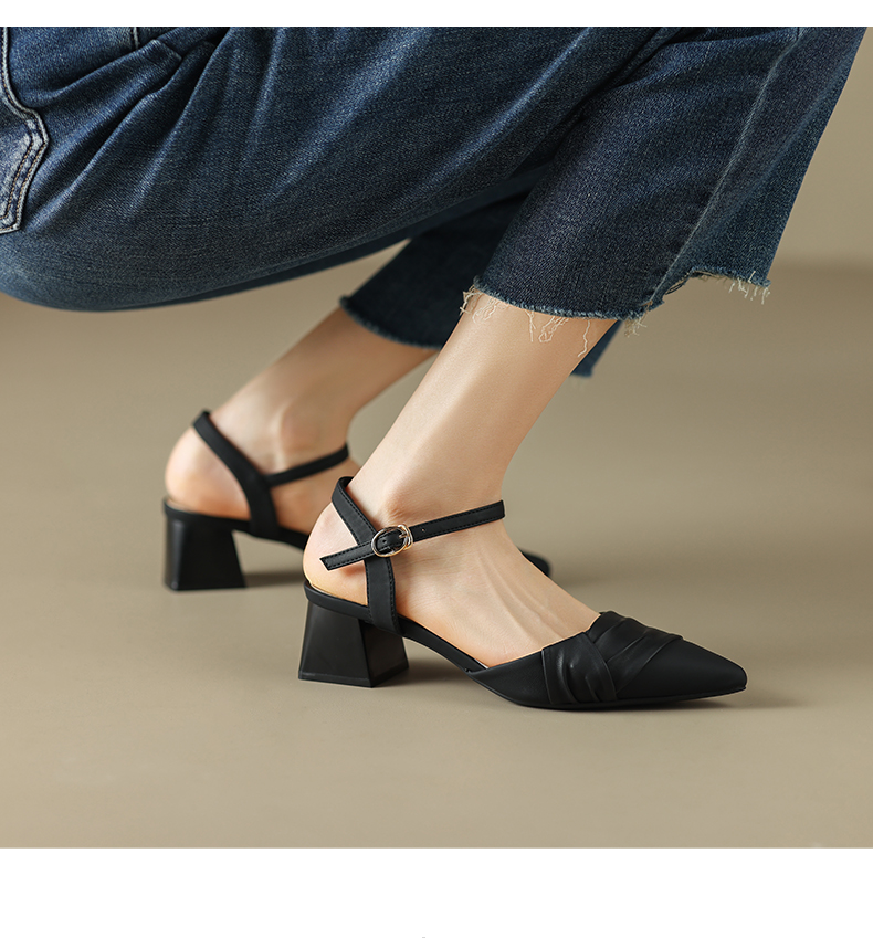 ZHR尖头单凉鞋女2023新款夏季韩版百搭包头时装一字扣带凉鞋气质