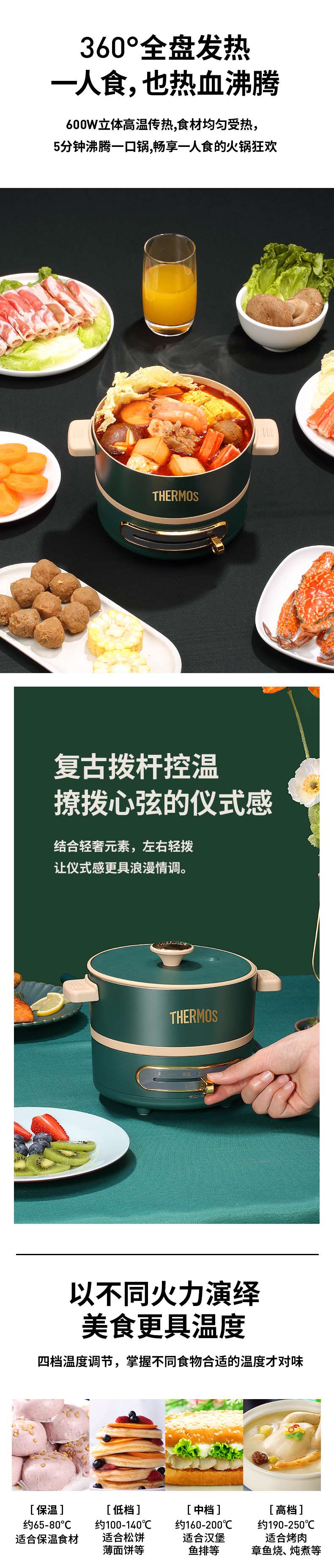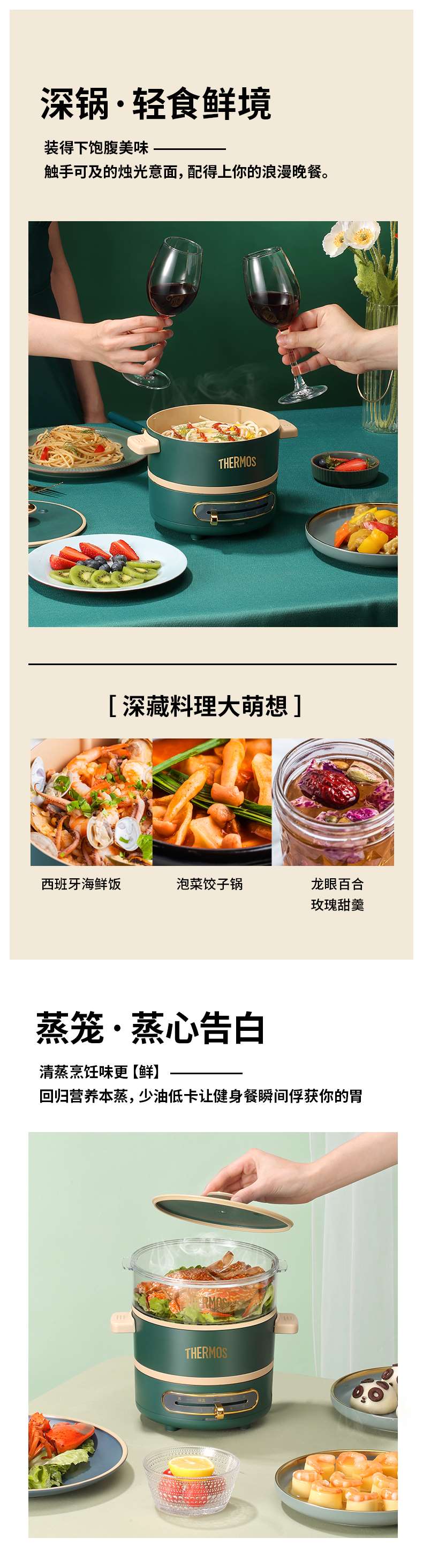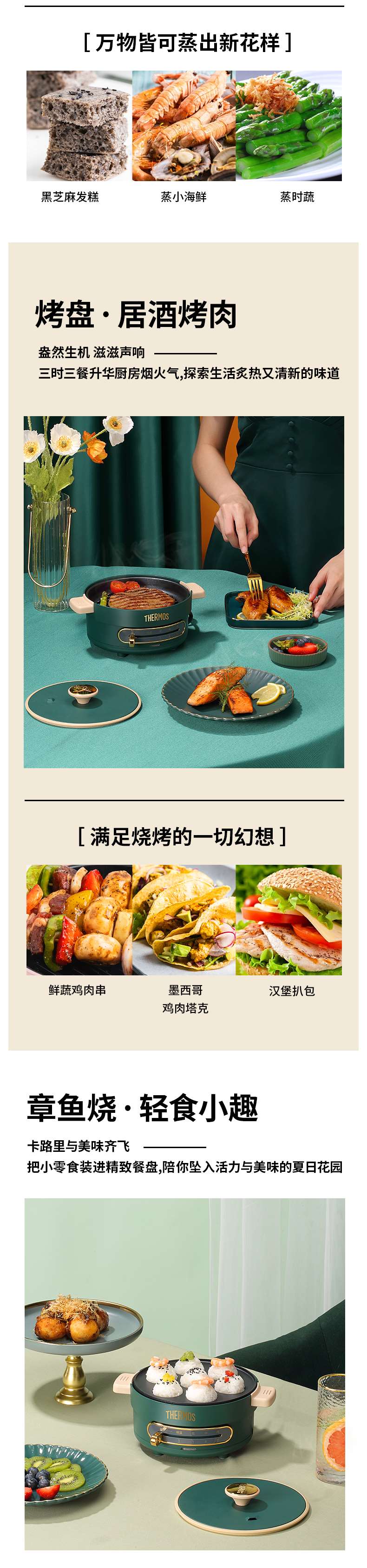 膳魔师多功能料理锅家用网红锅煎煮烤涮一体电煮锅宿舍小型电蒸锅【XPQ】