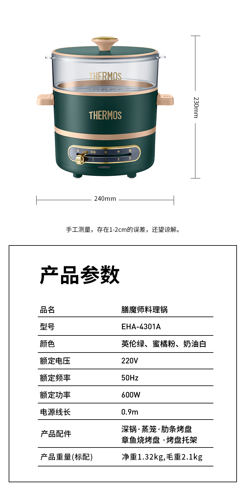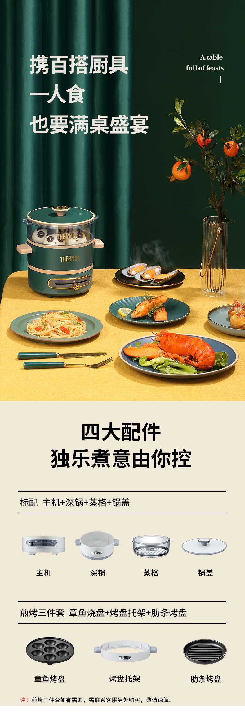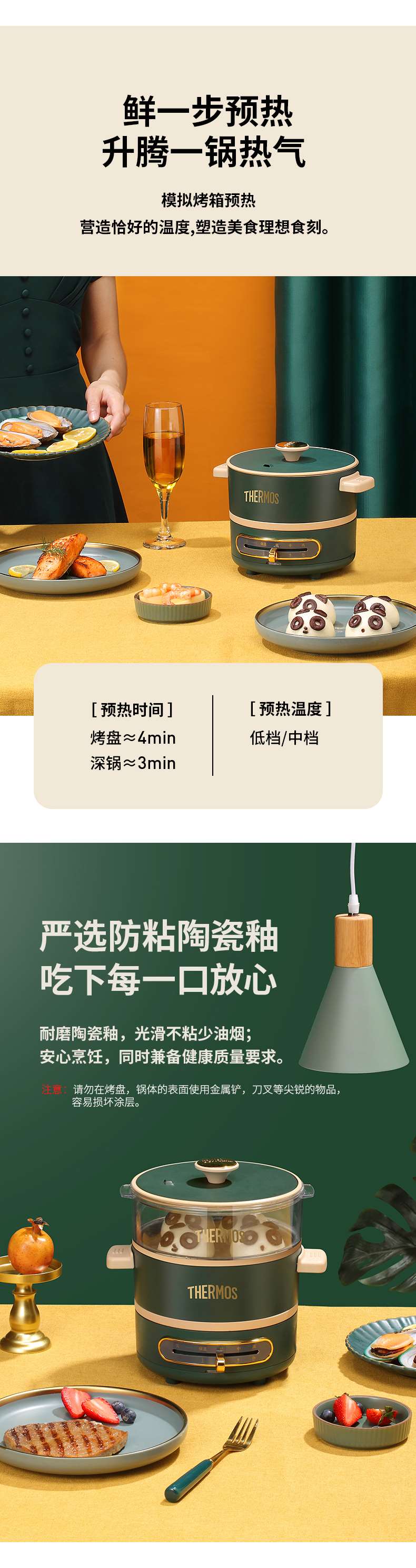 膳魔师多功能料理锅家用网红锅煎煮烤涮一体电煮锅宿舍小型电蒸锅【XPQ】