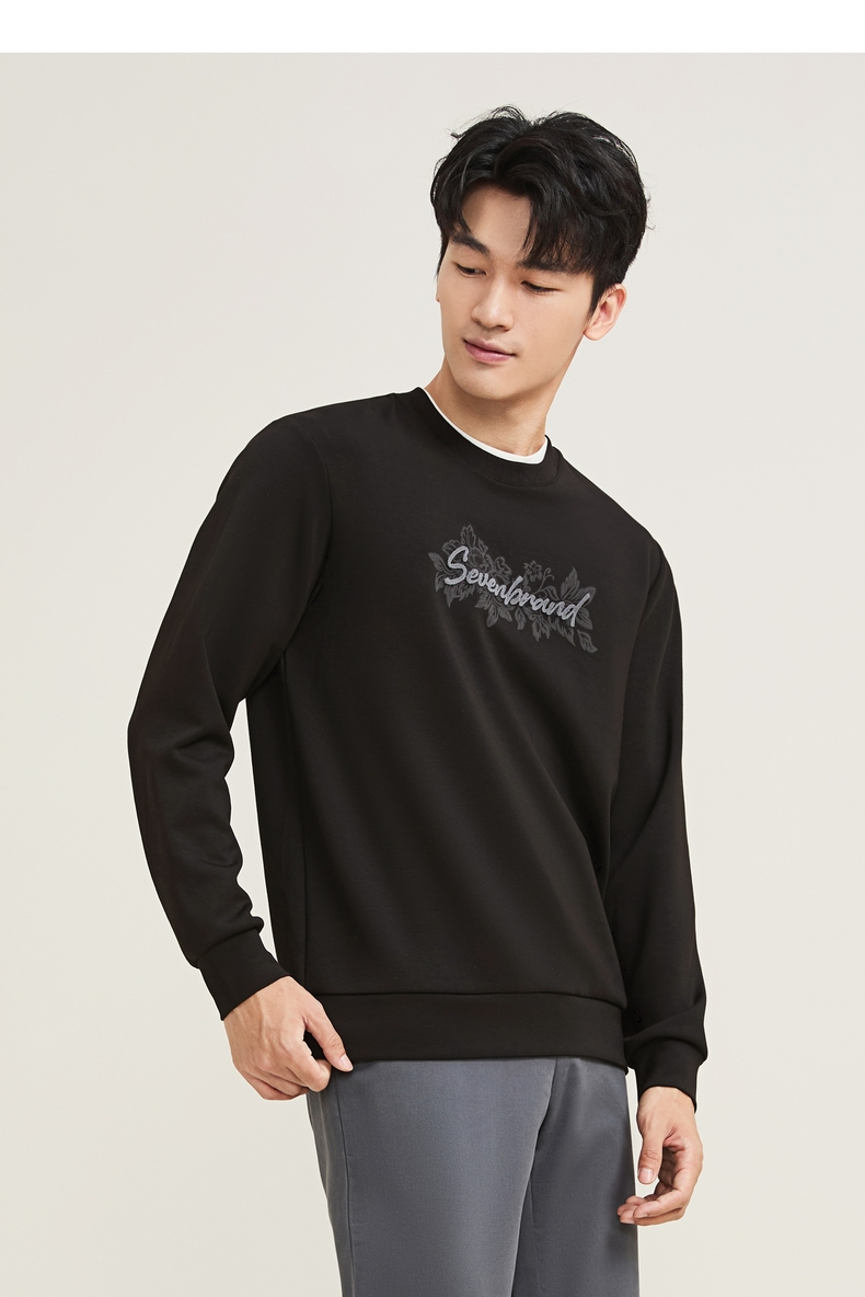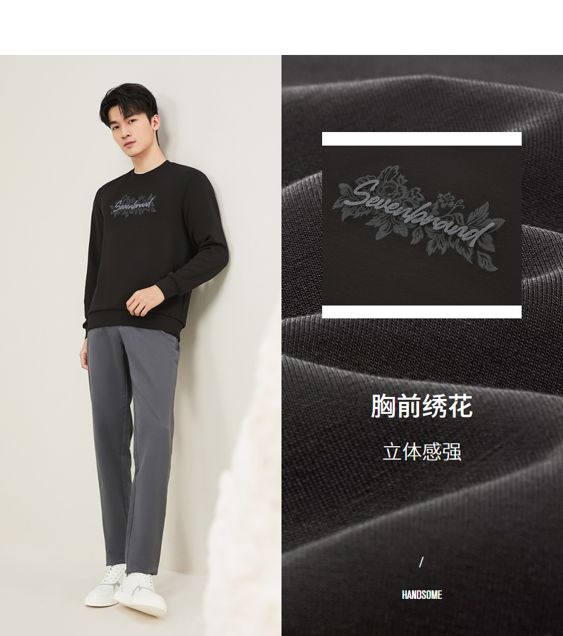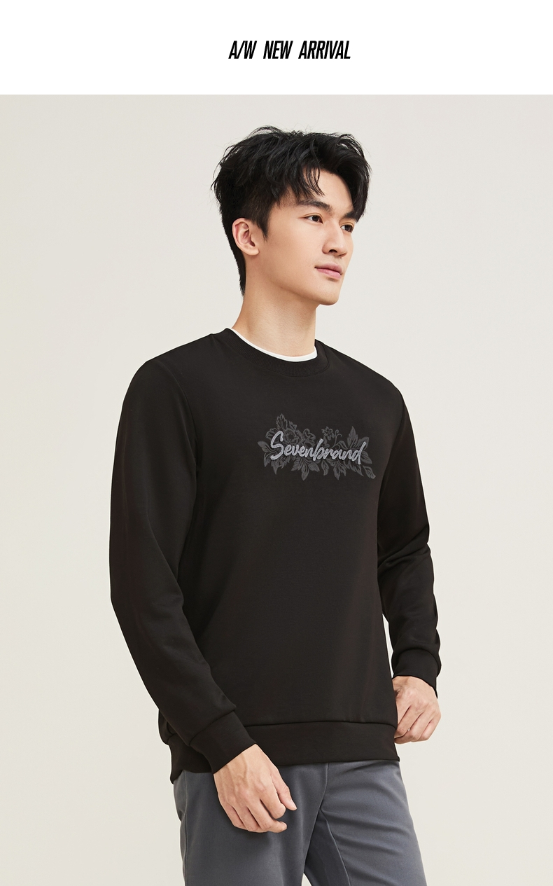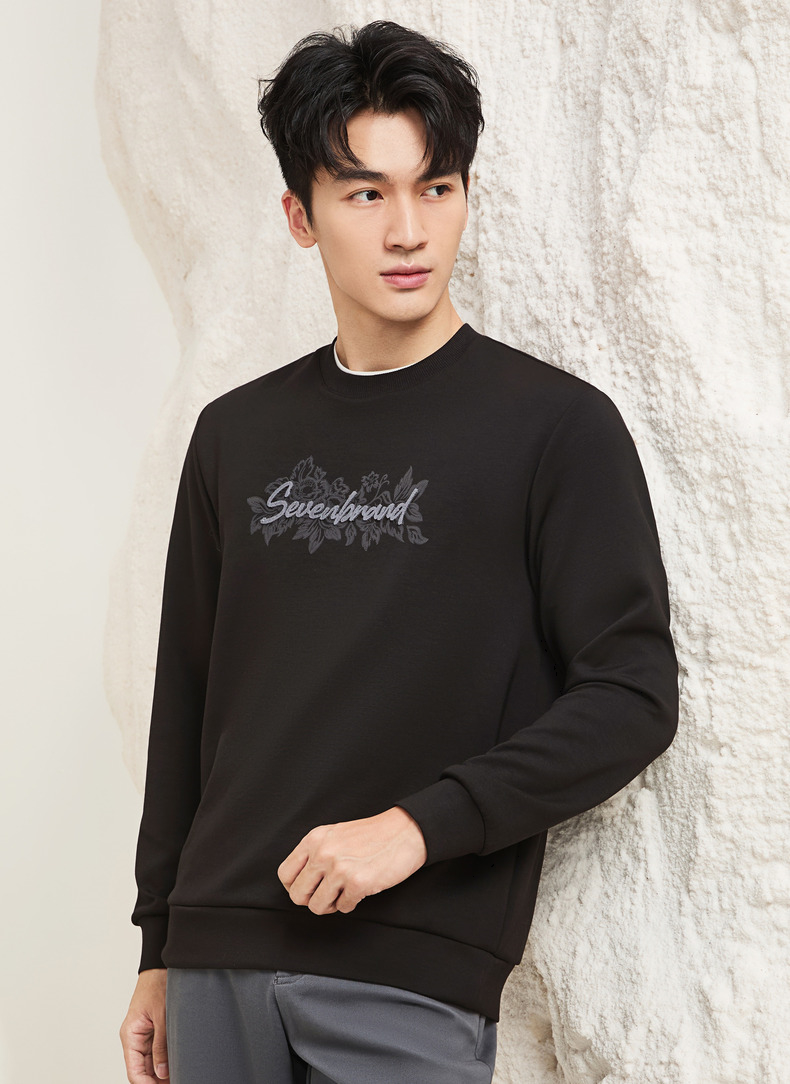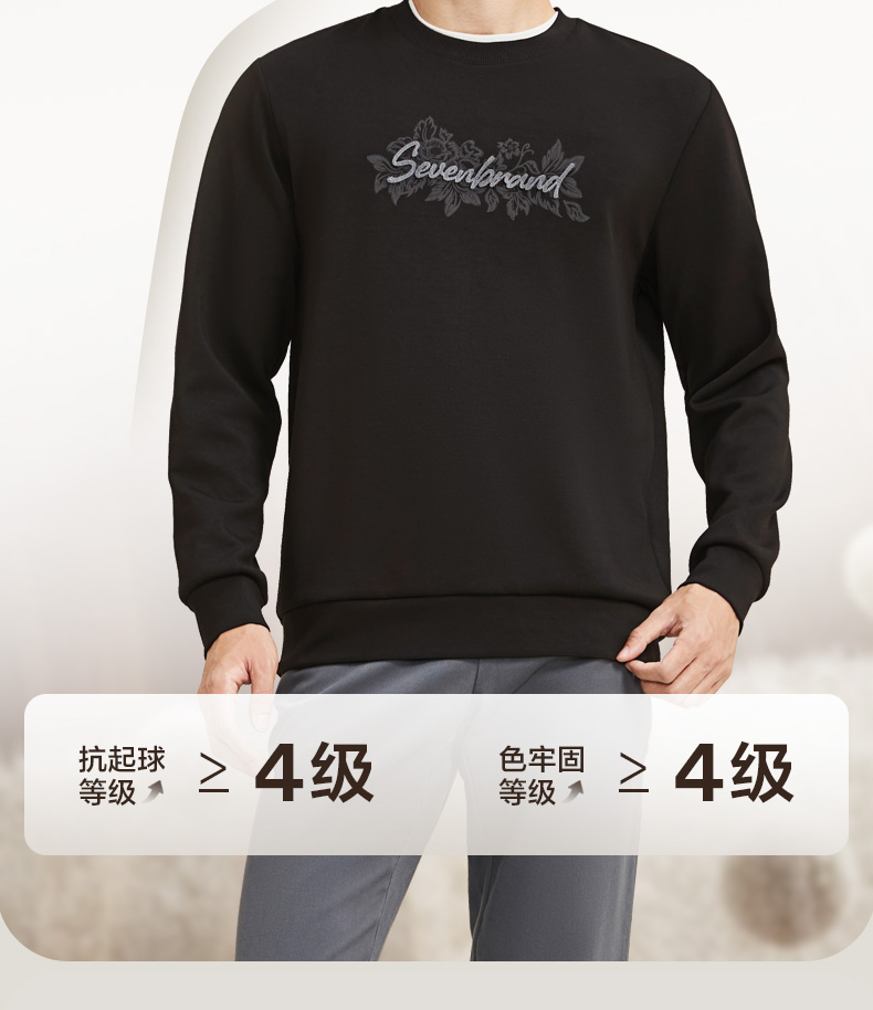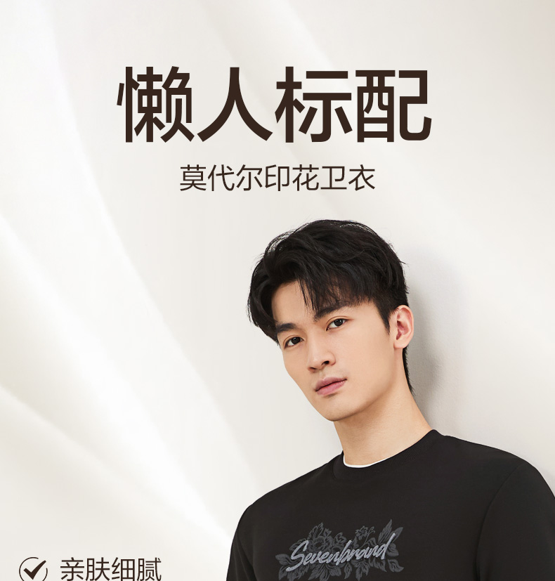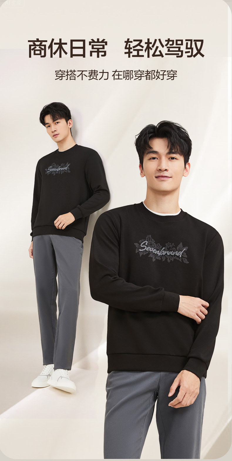 【莫代尔/图案款】柒牌男装印花圆领套头卫衣男秋季时尚休闲上衣129W70370