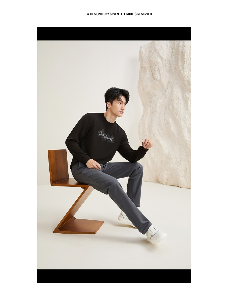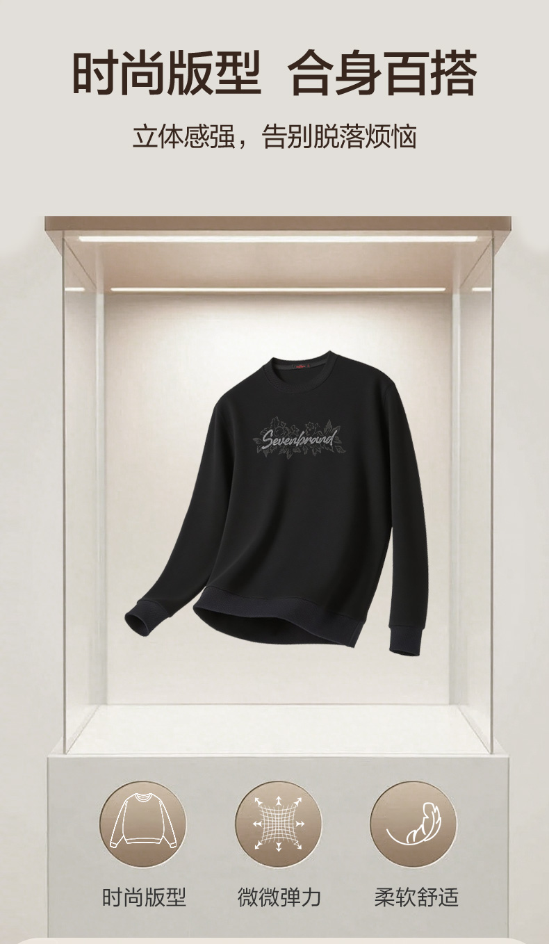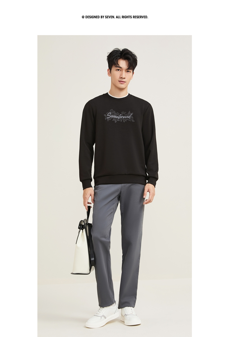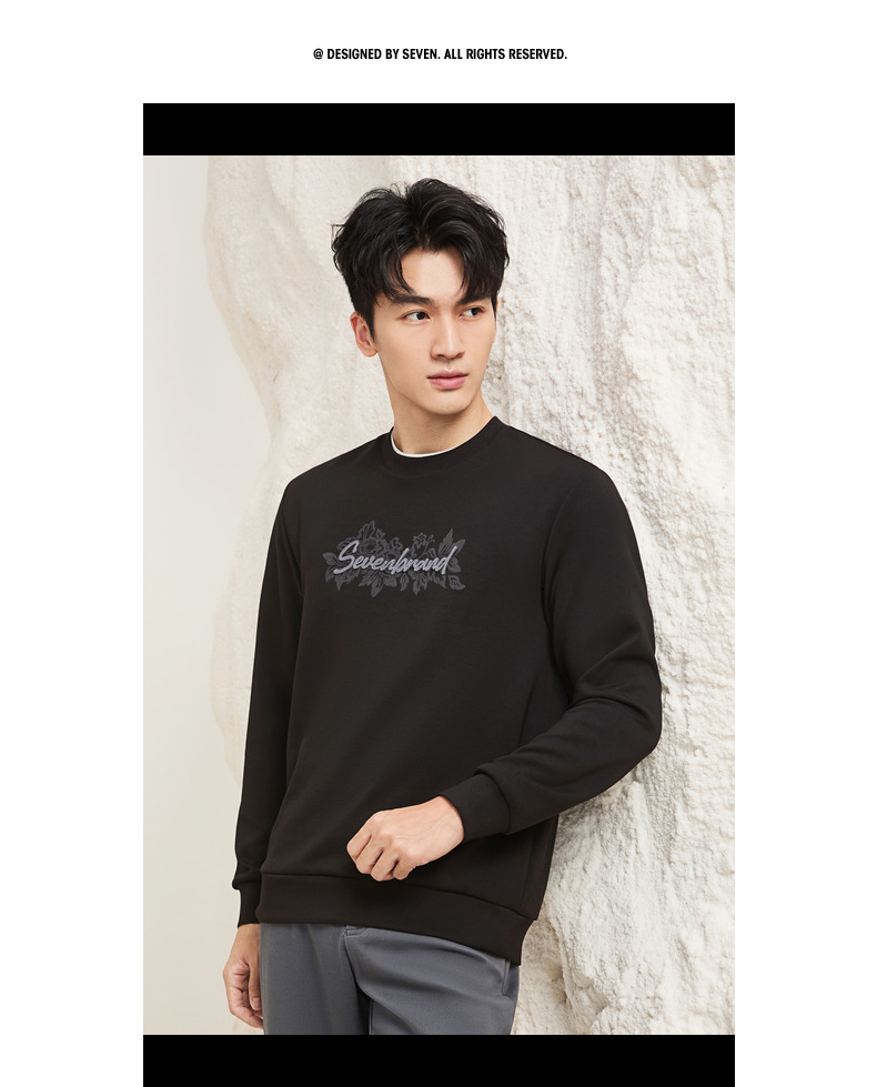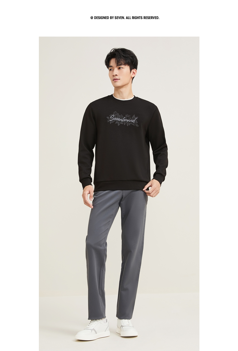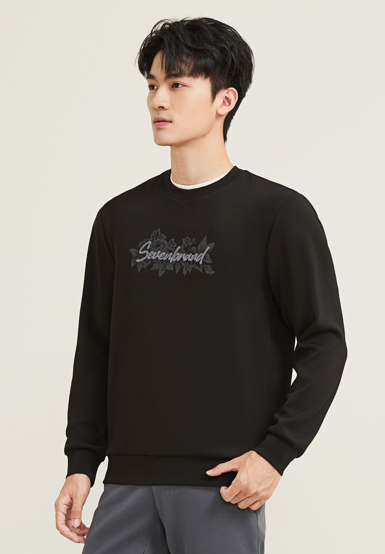 【莫代尔/图案款】柒牌男装印花圆领套头卫衣男秋季时尚休闲上衣129W70370