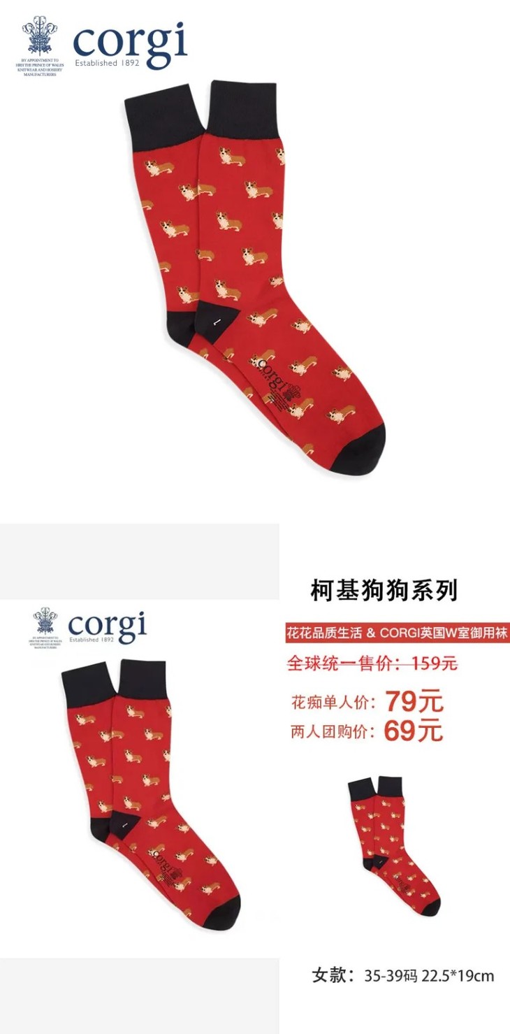 花花好物分享!圣诞节/元旦/新年纯福利袜!CORGI柯基英国进口男士女士儿童亲子中筒袜袜子