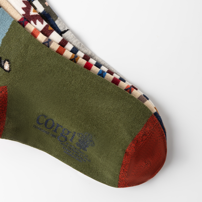首先,它是英国W室的“御用”袜子品牌商-Corgi制作的手工缝制的手工袜~Corgi将个性化设计玩味到了JI致!有着你不可以忽略的英式设计,手工制作,还有百年老厂!