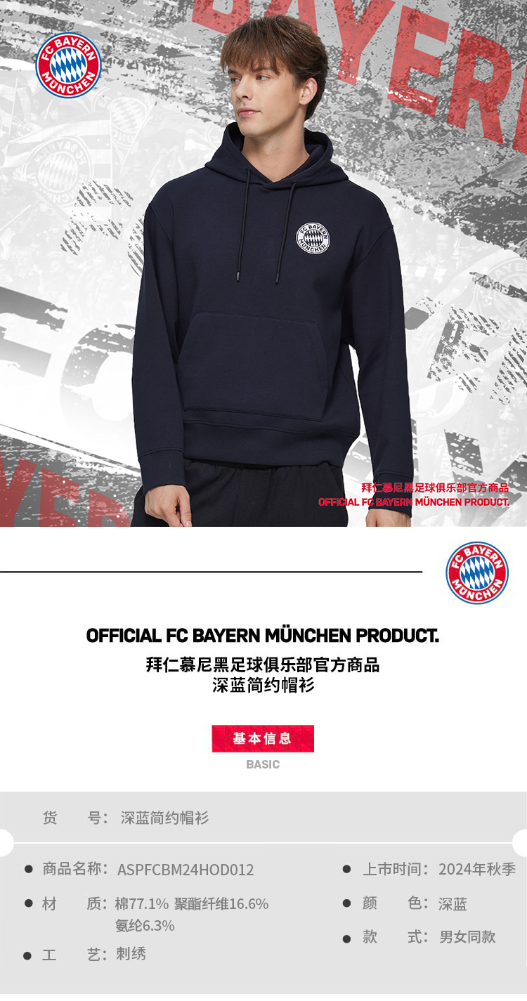 【官方正版】拜仁慕尼黑足球俱乐部 | 深蓝卫衣休闲运动套头衫