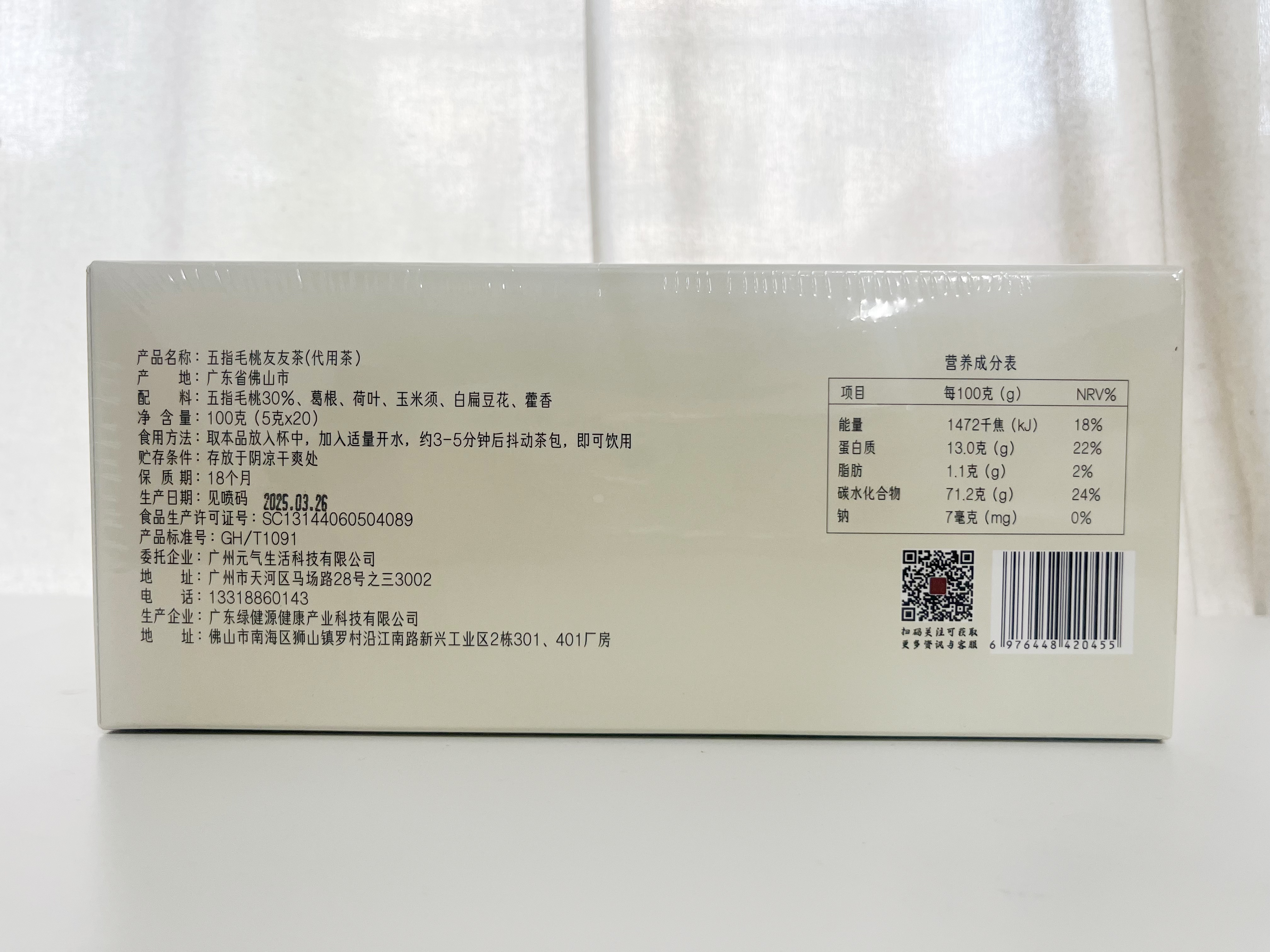【配料】五指毛桃30%、荷叶、玉米须、白扁豆花、藿香